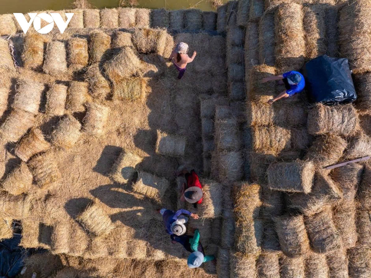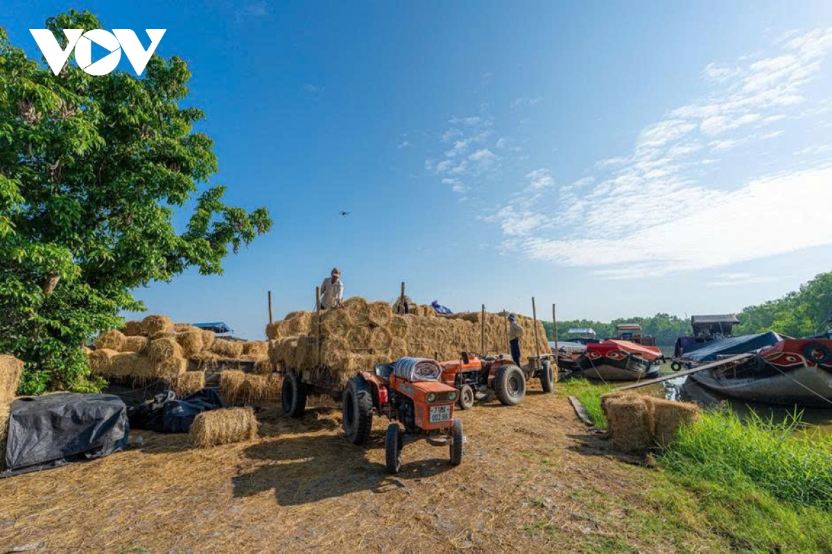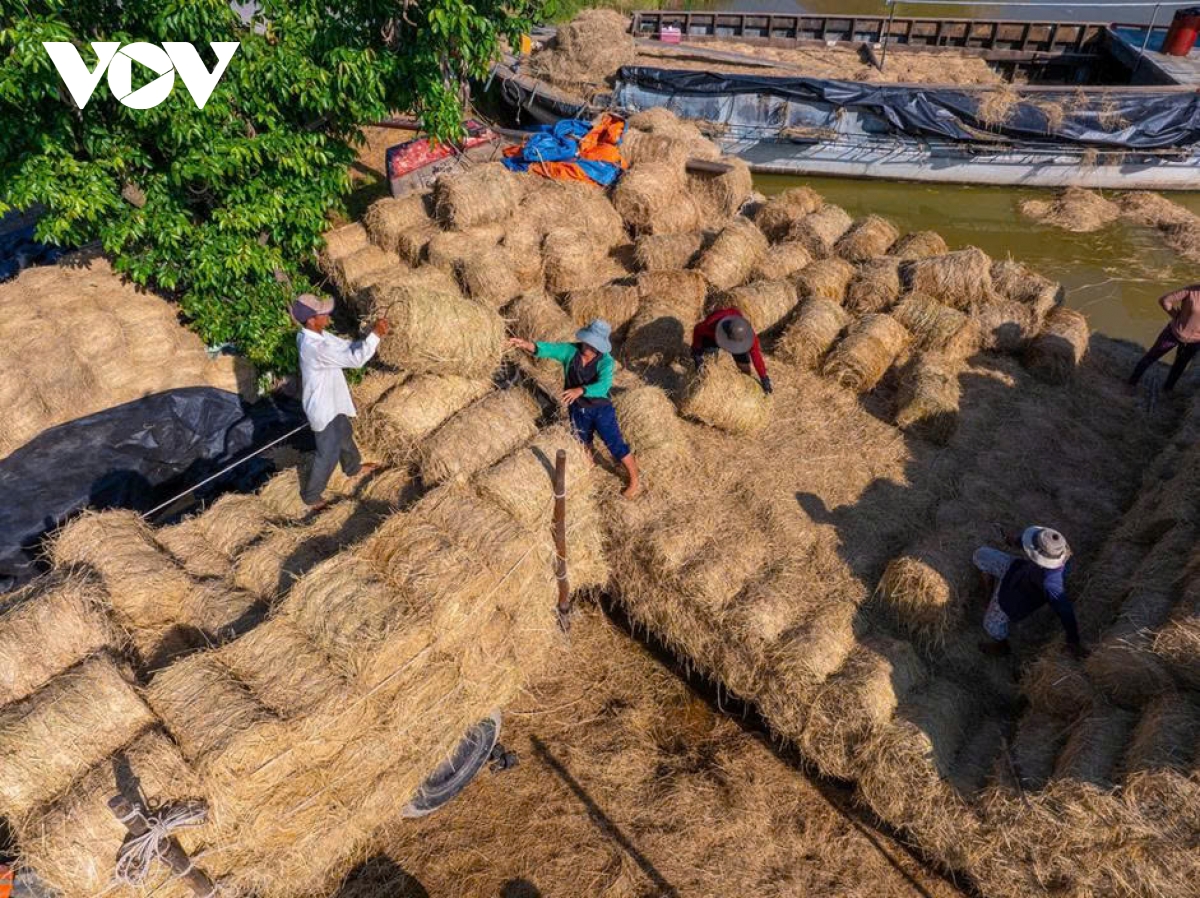 Mỗi ghe bầu như một kho chứa di động, chở từ vài trăm đến hơn một nghìn cuộn rơm khô, ép chặt bằng máy. Quy trình thu gom - ép - vận chuyển được thực hiện khép kín, giúp rơm giữ được độ khô, sạch và không bị mốc khi lưu trữ dài ngày.