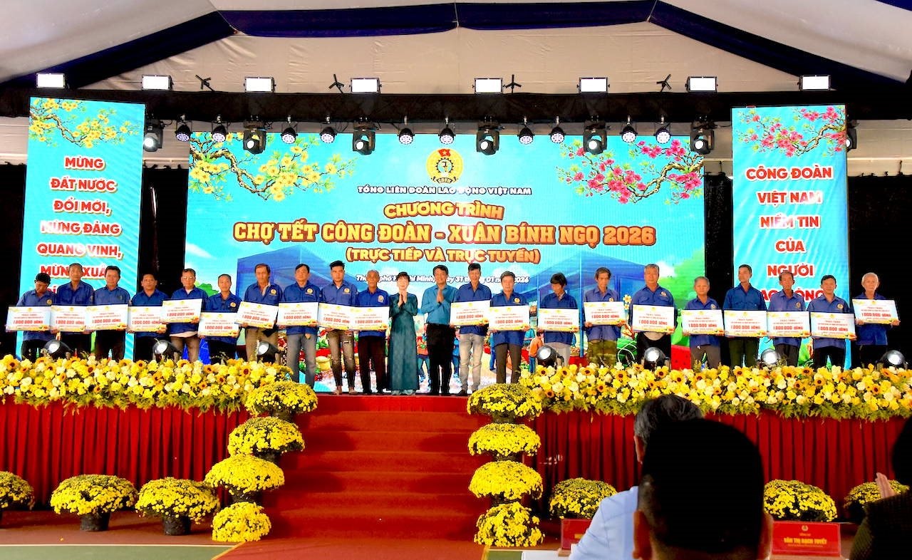 Sáng 31/1, tại TP.HCM, Tổng Liên đoàn Lao động (LĐLĐ) Việt Nam tổ chức chương trình “Chợ Tết Công đoàn - Xuân 2026”. Chương trình diễn ra theo hình thức trực tiếp kết hợp trực tuyến trên phạm vi toàn quốc.