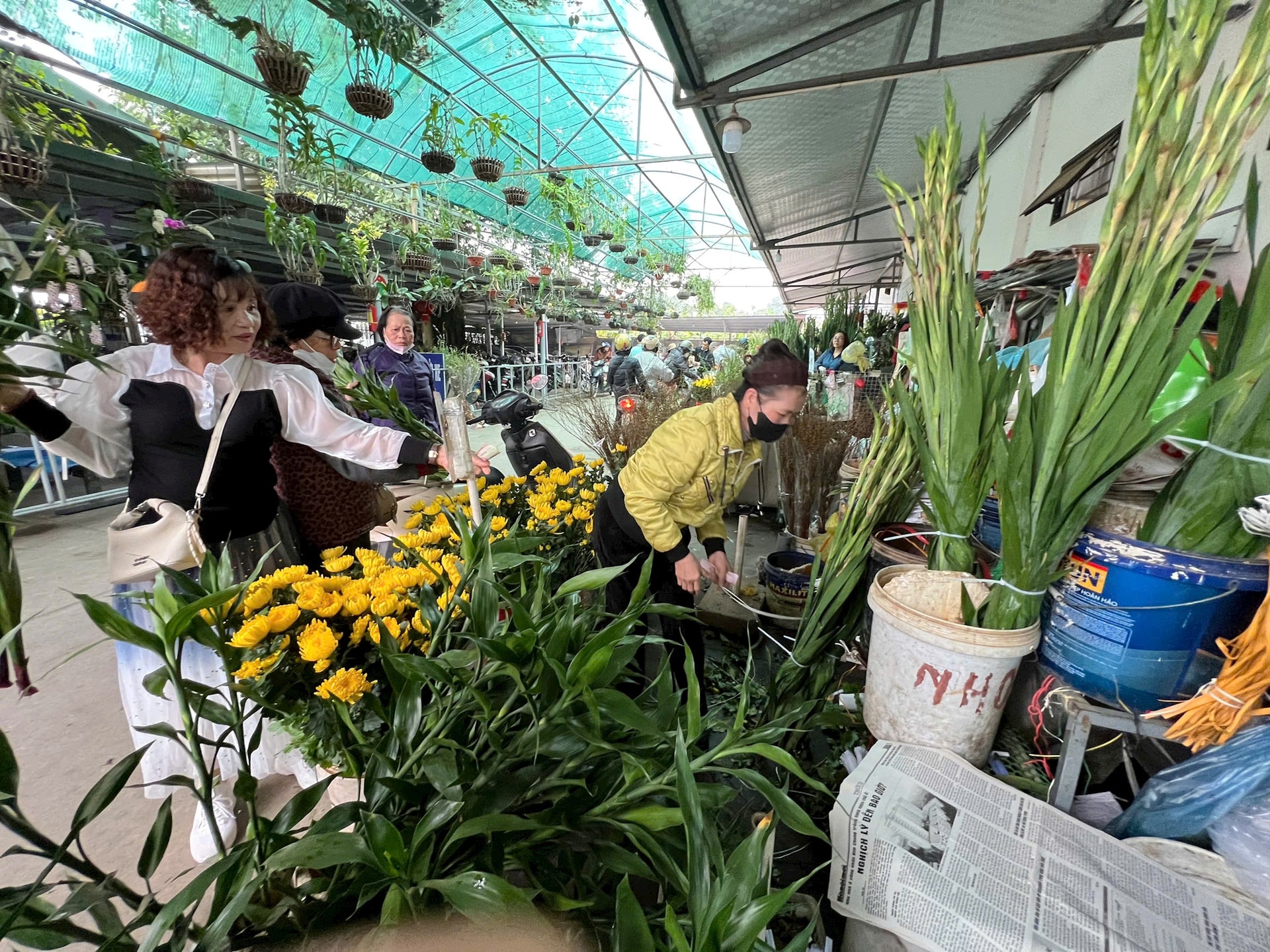 Không chỉ thực phẩm, hoa tươi cũng là mặt hàng được người dân quan tâm nhiều trong sáng 26 tháng chạp. Các quầy hoa rực rỡ sắc màu của lay ơn, ly, cúc, tuyết mai, đào, mai… thu hút đông đảo người mua. So với ngày thường, giá hoa đã tăng rõ rệt và còn tiếp tục nhích lên từng ngày.