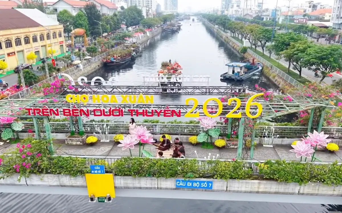 Điểm dừng chân cuối cùng của hành trình là bến Bình Đông, nơi tái hiện sinh động nét văn hóa “trên bến dưới thuyền”. Khi những chuyến ghe từ miền Tây cập bến, cả đoạn kênh rực rỡ sắc màu của hoa mai, hoa cúc và hoa giấy, hòa cùng tiếng đờn ca tài tử đặc trưng.