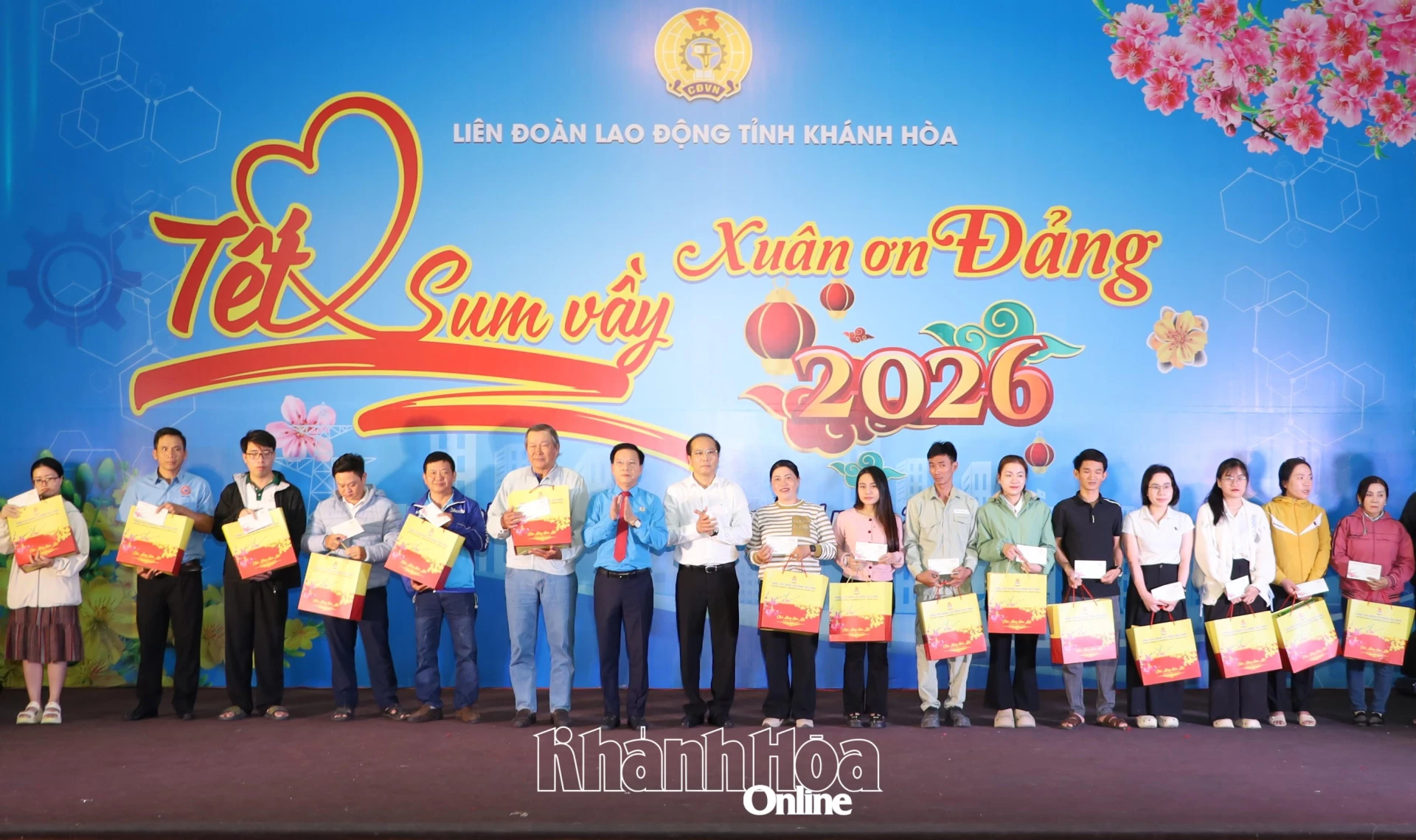 Nhằm chăm lo, giúp người dân có hoàn cảnh khó khăn có điều kiện đón Tết đủ đầy hơn, sáng 1-2, Hội Chữ thập đỏ tỉnh phối hợp với Ủy ban MTTQ Việt Nam tỉnh tổ chức chương trình “Tết Nhân ái” xuân Bính Ngọ năm 2026 cấp tỉnh tại phía nam Khánh Hòa. Tham dự chương trình ý nghĩa này có đồng chí Lâm Đông - Phó Bí thư Tỉnh ủy, Chủ tịch HĐND tỉnh. Trước đó, ngày 31-1, Liên đoàn Lao động tỉnh tổ chức chương trình “Tết sum vầy - Xuân ơn Đảng” và Chợ Tết Công đoàn năm 2026. Tham dự chương trình có các đồng chí: Nguyễn Khắc Hà - Phó Bí thư Tỉnh ủy, Chủ tịch Ủy ban MTTQ Việt Nam tỉnh; Phạm Thị Xuân Trang - Phó Chủ tịch HĐND tỉnh; Nguyễn Thanh Hà - Phó Chủ tịch UBND tỉnh. Các chương trình đã mang mùa xuân ấm áp, sẻ chia đến với người dân, đoàn viên, người lao động (NLĐ) trên địa bàn tỉnh.