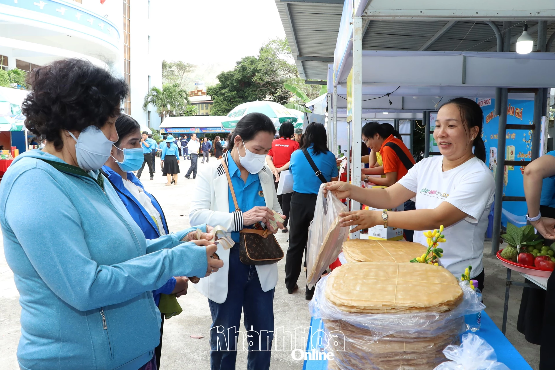 Đoàn viên, người lao động tham quan, mua sản phẩm tại một gian hàng giảm giá.