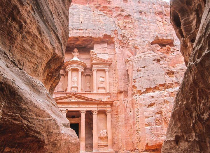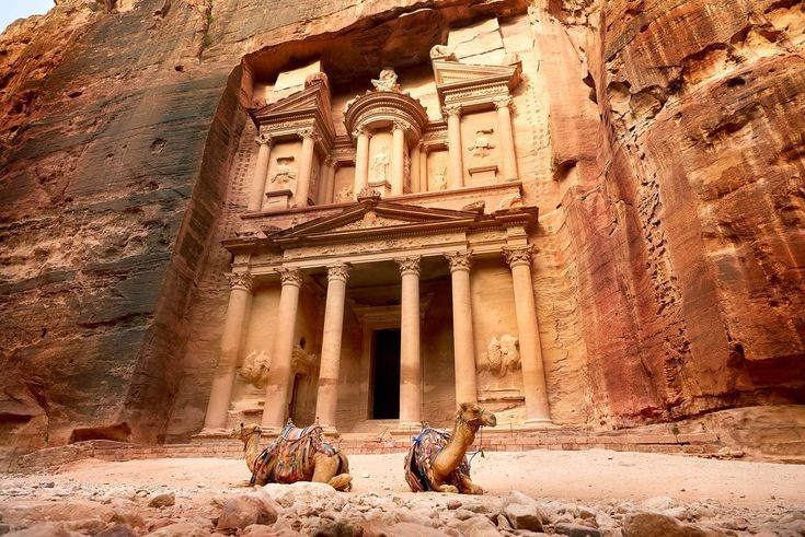 Tòa nhà Al-Khazneh (Kho báu) là biểu tượng của cả thành phố. Mặt tiền khổng lồ của công trình được chạm khắc tinh xảo khiến du khách choáng ngợp. Ảnh: Pinterest.