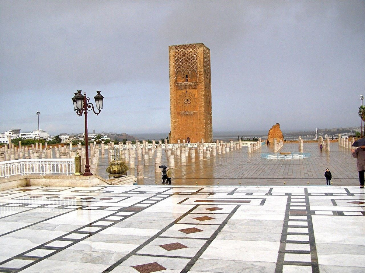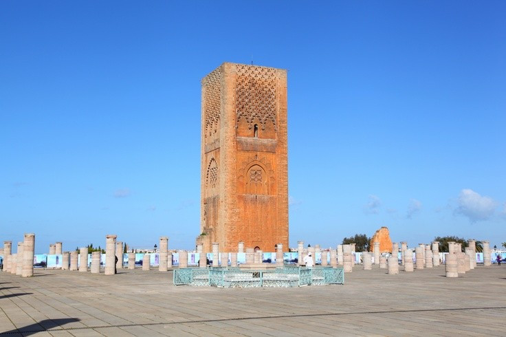 Nằm cạnh lăng Mohammed V. Quần thể kiến trúc tháp - lăng này là điểm du lịch nổi bật nhất Morocco. Ảnh: Pinterest.