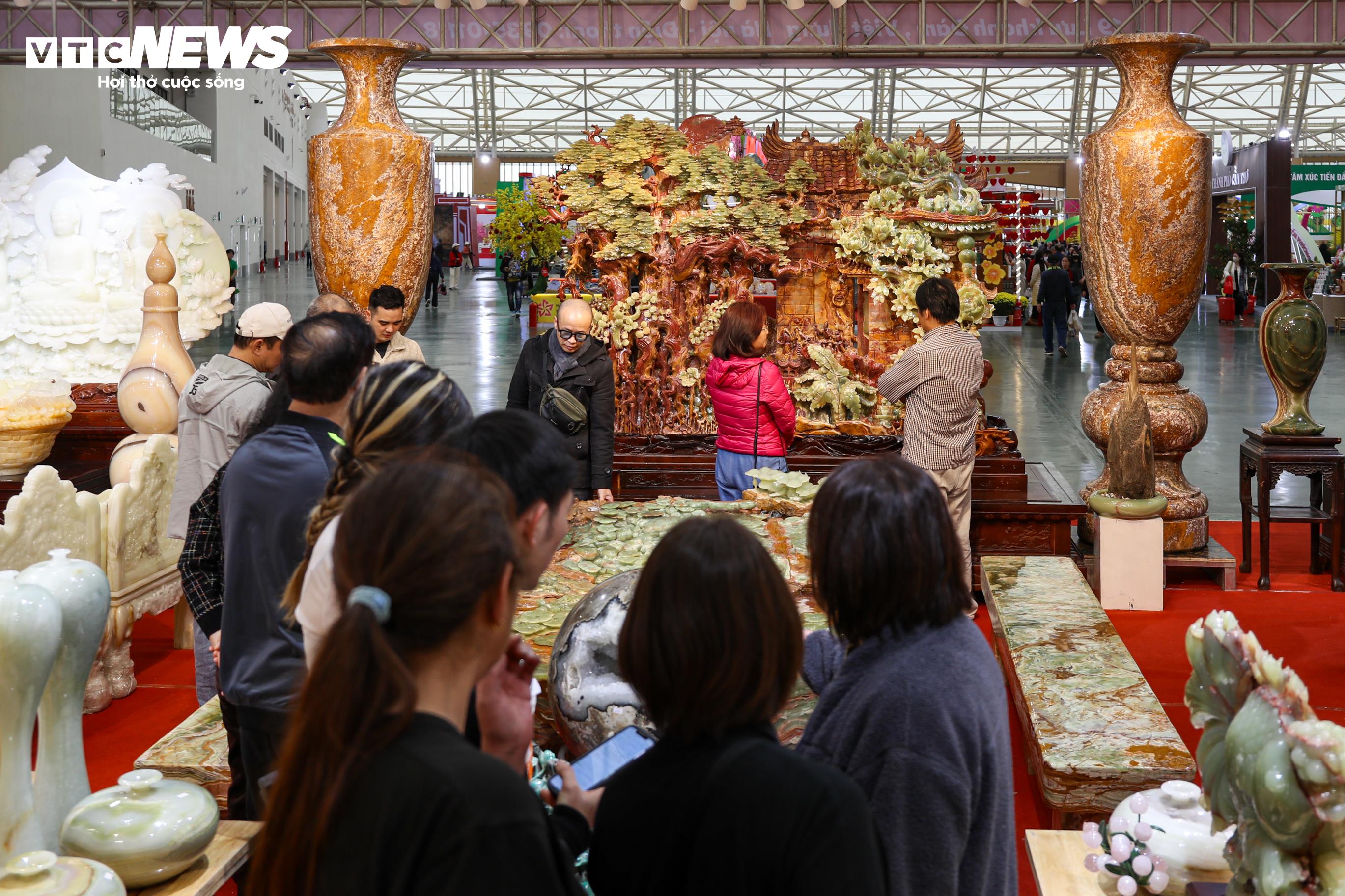 Hội chợ Mùa Xuân 2026 quy tụ hàng trăm sản phẩm đá quý đa dạng, thu hút đông đảo người dân đến tham quan, mua sắm.