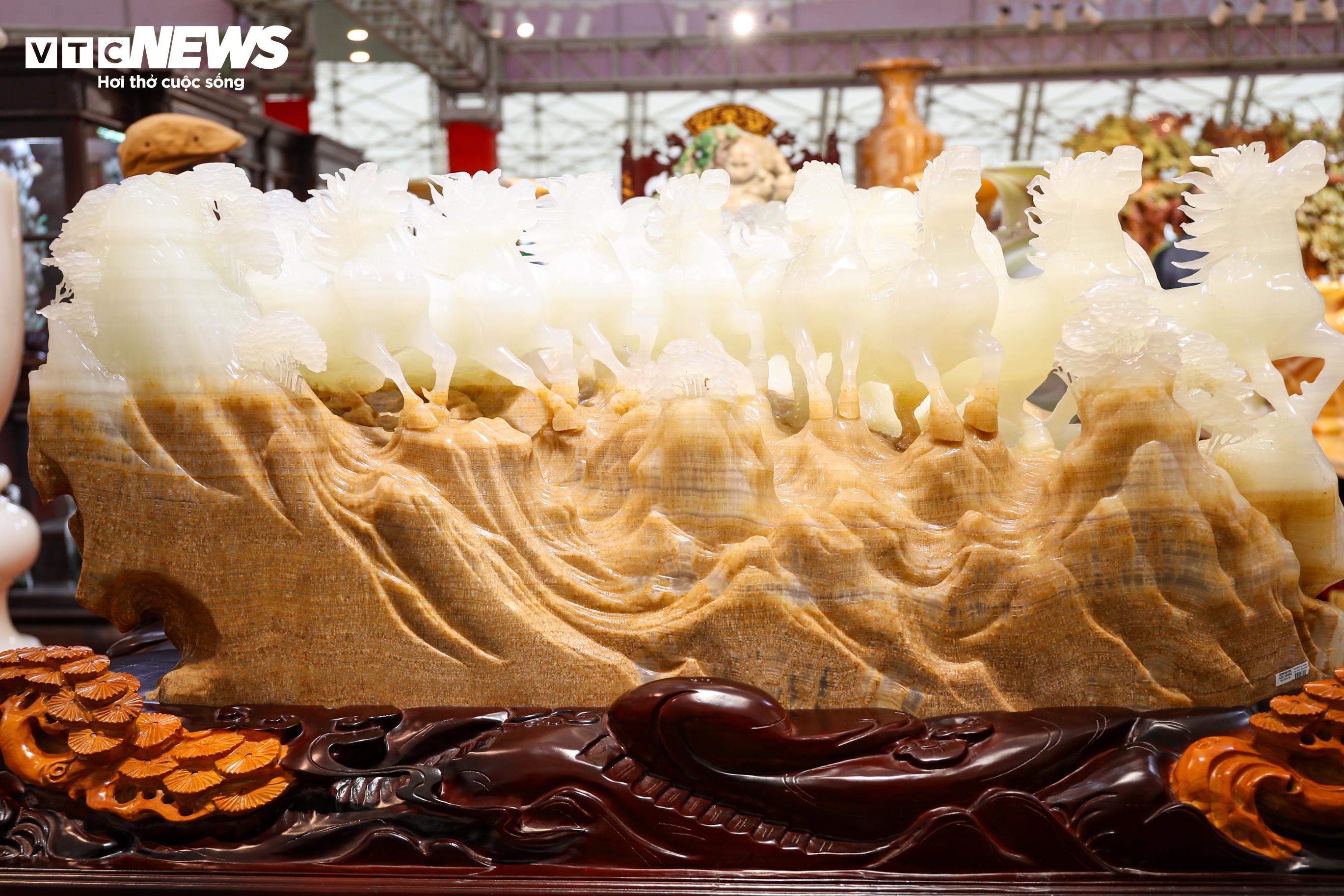 Được tạc từ đá onyx nguyên khối, tác phẩm Bát Mã khắc họa hình ảnh 8 con ngựa phi nước đại, gửi gắm khát vọng về một Việt Nam phát triển mạnh mẽ, với mức giá hơn 800 triệu đồng.