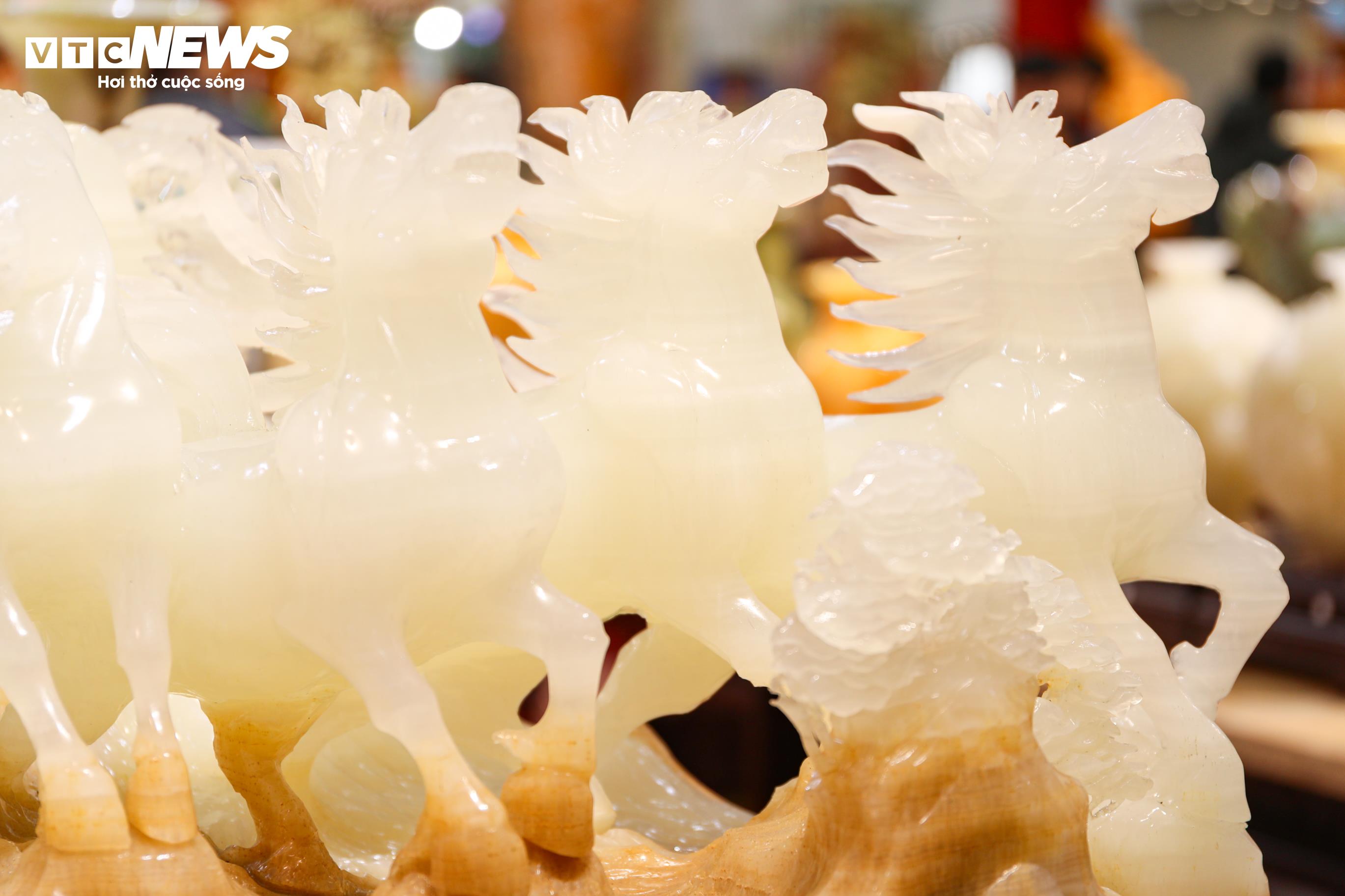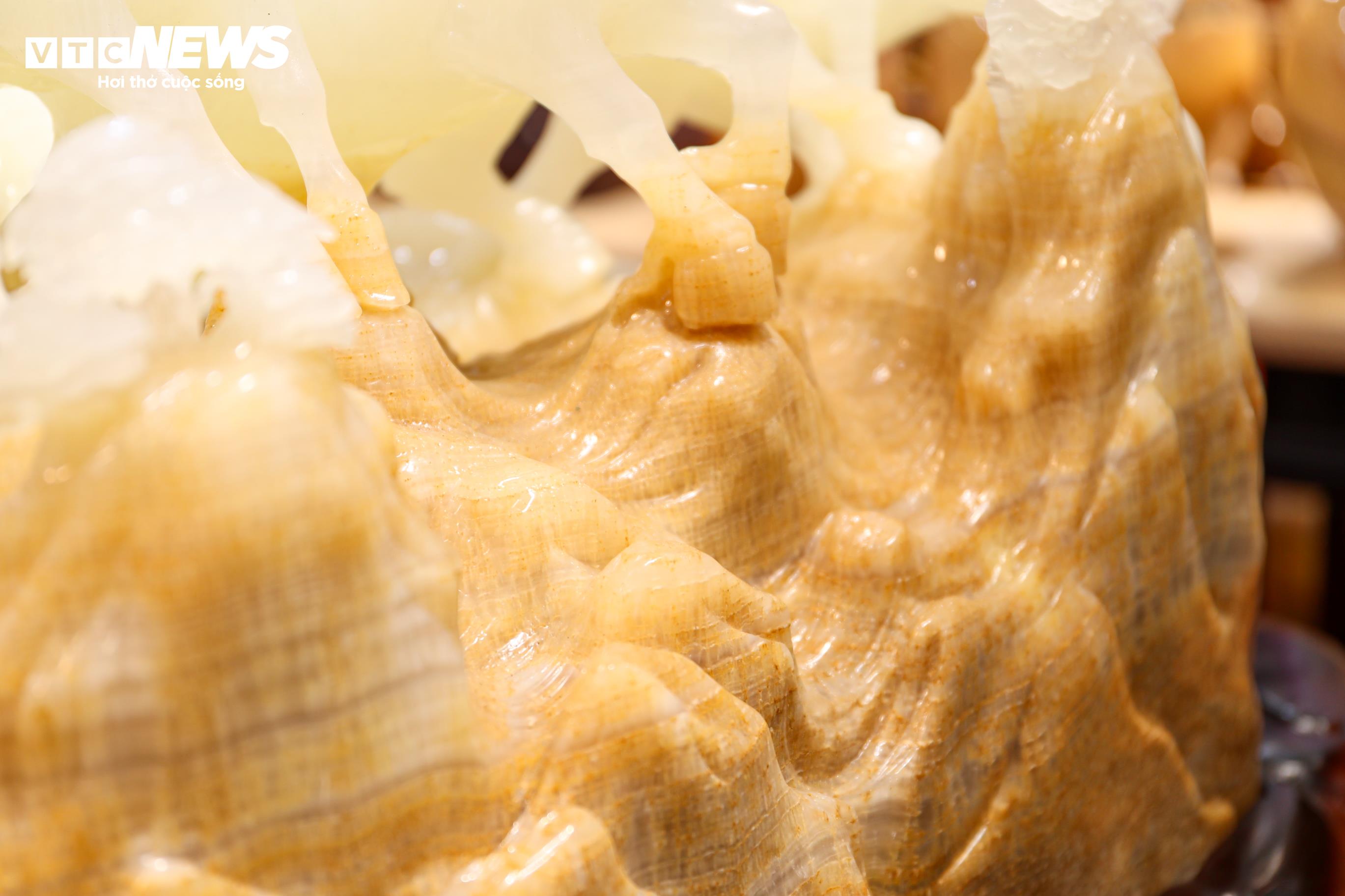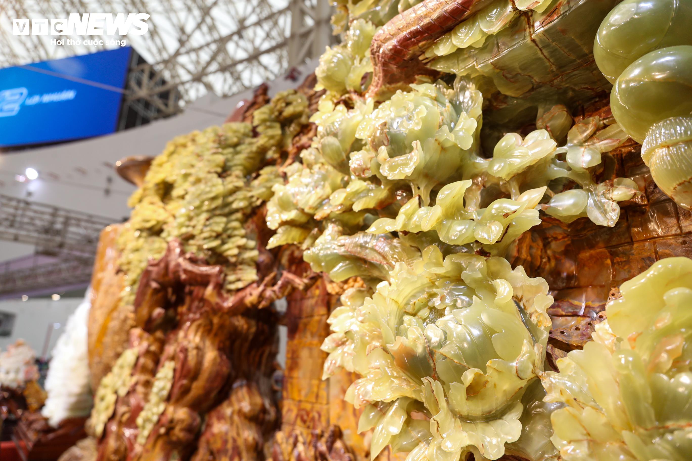 Trong đó, đáng chú ý là bức tranh đá quý được làm từ đá onyx có giá lên tới 9,5 tỷ đồng, gây ấn tượng mạnh với khách tham quan.