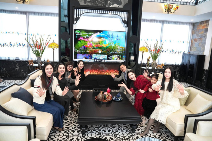Khu vực phòng khách được Phạm Phương Thảo trưng bày hoa tươi đón Tết