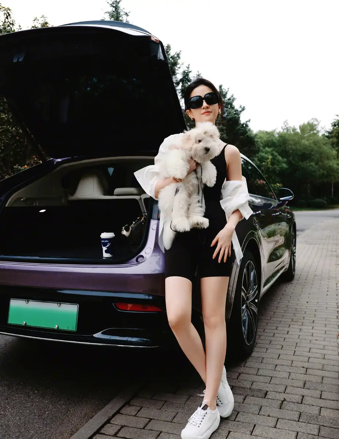 Trong loạt ảnh mới, "thần tiên tỷ tỷ" xuất hiện với phong cách giản dị nhưng vô cùng thanh lịch: chiếc quần đùi đen kết hợp cùng áo dây, sơ mi trắng khoác ngoài. Hình ảnh cô dắt chú chó cưng đi dạo đã nhanh chóng thu hút sự chú ý từ người hâm mộ.