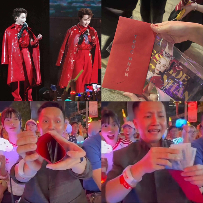 Tối 2/11, trong không khí sôi động của một đêm diễn ngoài trời, Trúc Nhân đã khiến toàn bộ khán giả vỡ òa khi bất ngờ mang đến món quà không ai ngờ tới đó là phát lì xì tiền mặt cho fan ngay giữa sân khấu. Hình ảnh nam ca sĩ diện trang phục đỏ rực, đứng giữa ánh đèn sân khấu lung linh, trao phong bao cho khán giả khiến mạng xã hội ngay lập tức "bùng nổ".