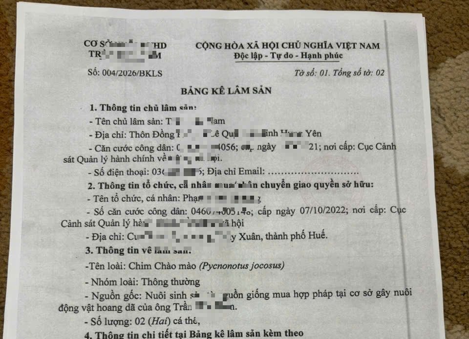 Các loài chim được đăng ký nuôi chủ yếu gồm chào mào, yến phụng và công Ấn Độ. Theo Chi cục Kiểm lâm, việc nuôi các loài chim cảnh thuộc nhóm động vật rừng thông thường phải tuân thủ quy định pháp luật và có hồ sơ chứng minh nguồn gốc hợp pháp.