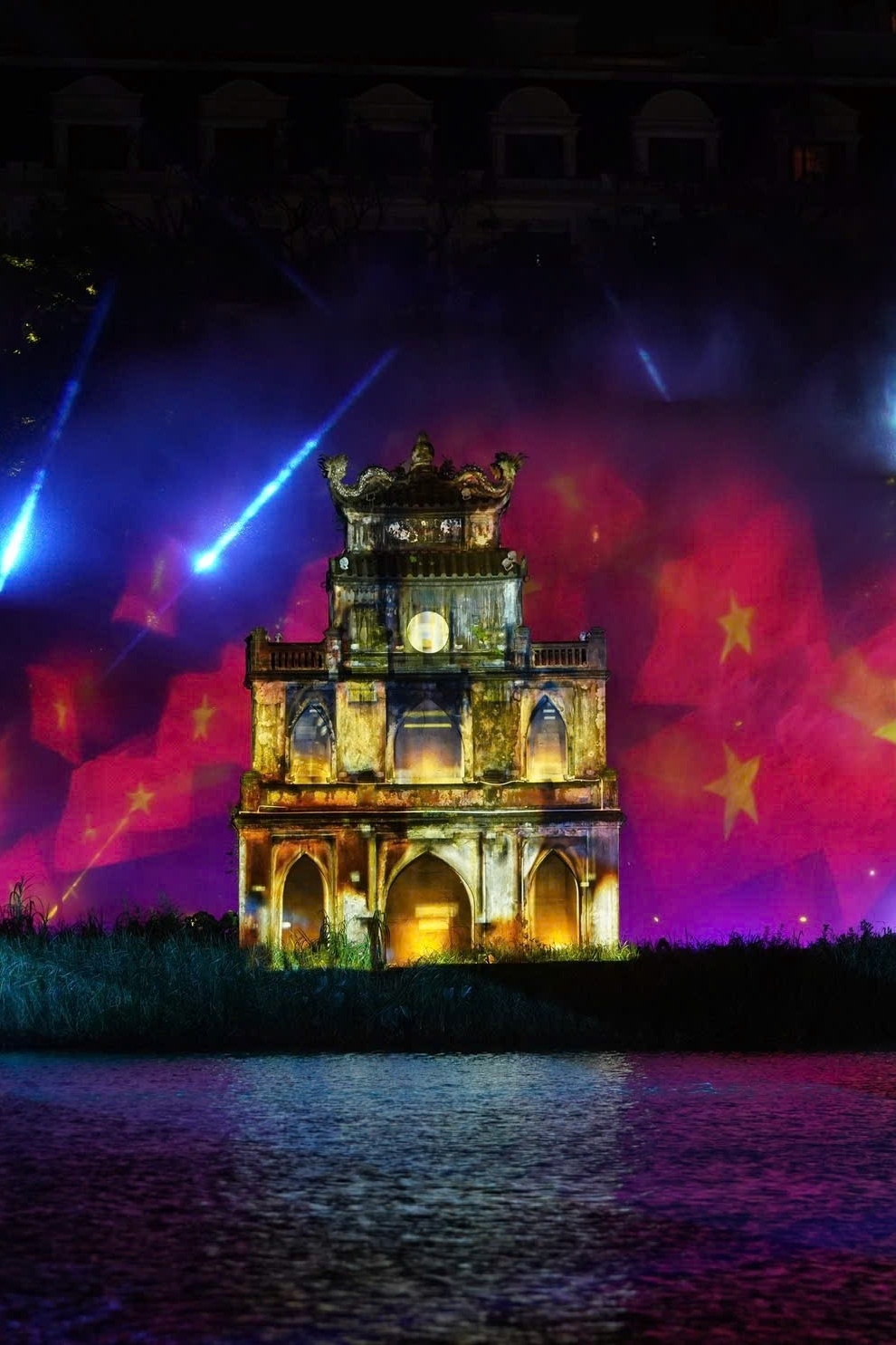 Hà Nội trình diễn 3D mapping tại khu vực Tháp Rùa (Hồ Gươm) mừng Quốc khánh 2/9. Ảnh: Linh Huỳnh.