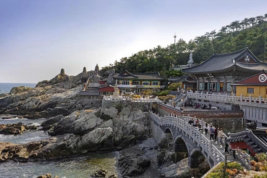 Chùa Haedong Yonggungsa đã trở thành một trong những điểm tham quan dễ nhận biết nhất tại Busan. Ảnh: Shutterstock