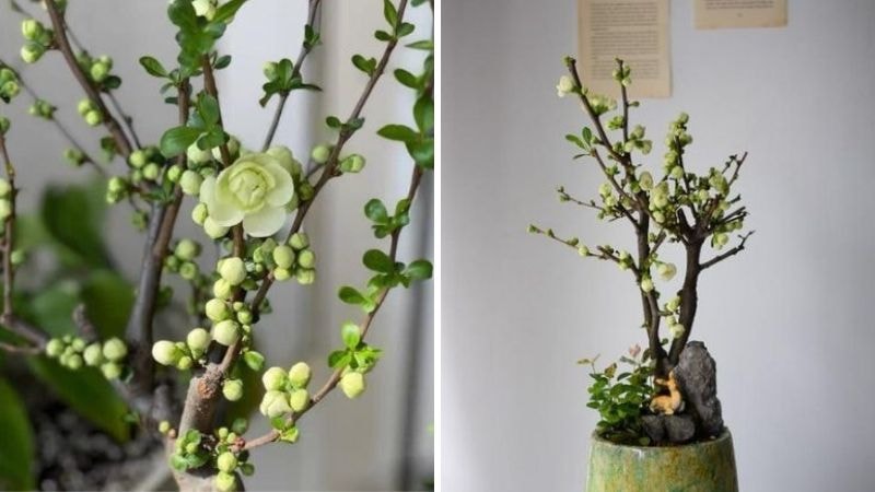 Khác với mai vàng truyền thống, mai ngũ phúc với hoa màu xanh hoặc xanh nhạt là lựa chọn độc đáo và hợp với người mệnh Mộc. Loài hoa này đại diện cho may mắn, phúc lộc và thịnh vượng, giúp tăng cường màu sắc tương sinh và mang lại nét tinh tế cho không gian ngày Tết.