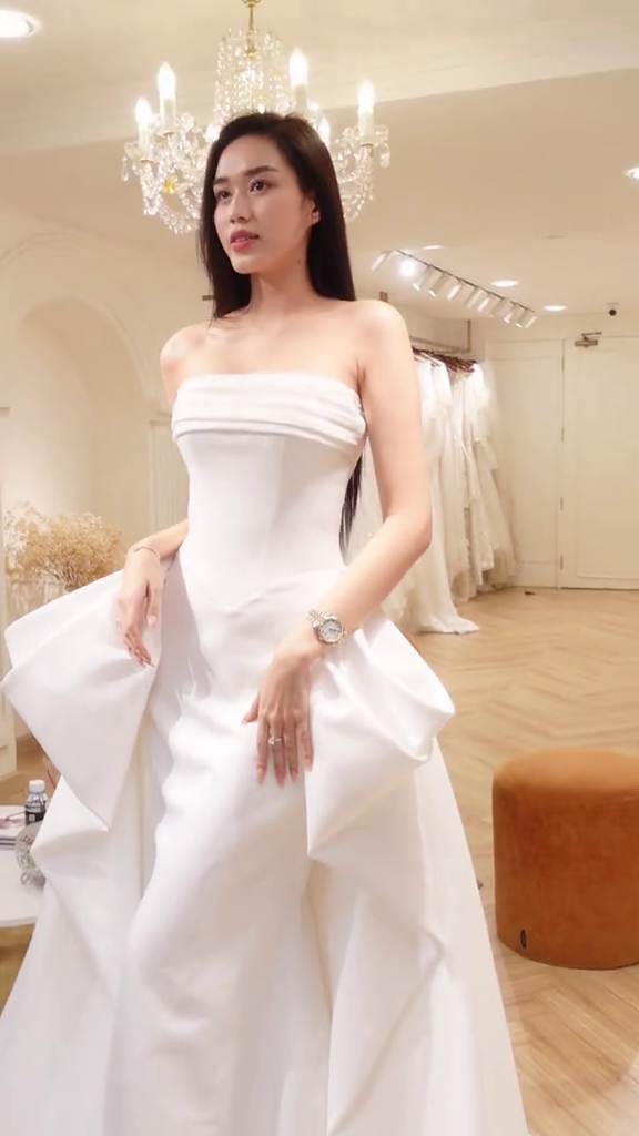 Cụ thể, trong khoảnh khắc thử váy cưới, Đỗ Thị Hà gây ấn tượng bởi ngoại hình đơn giản, gần như để mặt mộc và không tạo kiểu tóc cầu kỳ. Thế nhưng, trên tay nàng hậu bất ngờ xuất hiện chiếc Rolex Lady-Datejust dát vàng đính kim cương, có giá hơn 370 triệu đồng, cùng loạt phụ kiện kim cương tinh xảo. Chiếc đồng hồ này làm phong phú thêm bộ sưu tập đồng hồ tiền tỷ của nàng hoa hậu.