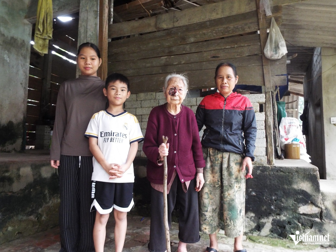 Từ đó đến nay, ở tuổi 63, bà Thủy trở thành điểm tựa duy nhất cho nhiều thế hệ trong gia đình. Ngoài chăm sóc mẹ chồng bệnh nặng, bà còn quần quật với 3 sào ruộng và làm thuê đủ việc để nuôi 3 cháu đang tuổi ăn học: Minh Thư (sinh năm 2010), Minh Quân (sinh năm 2013) và Thiện Nhân (sinh năm 2015).