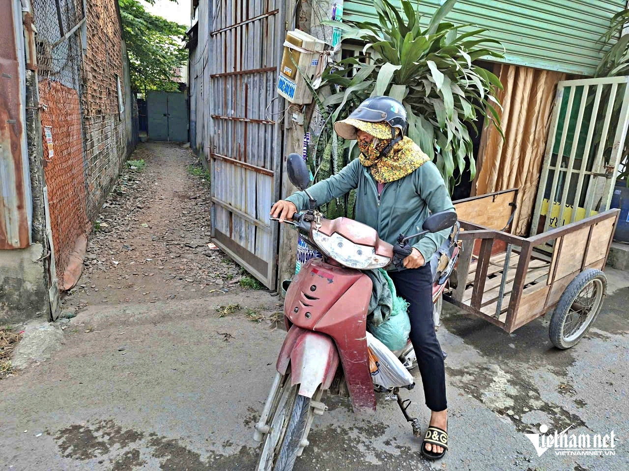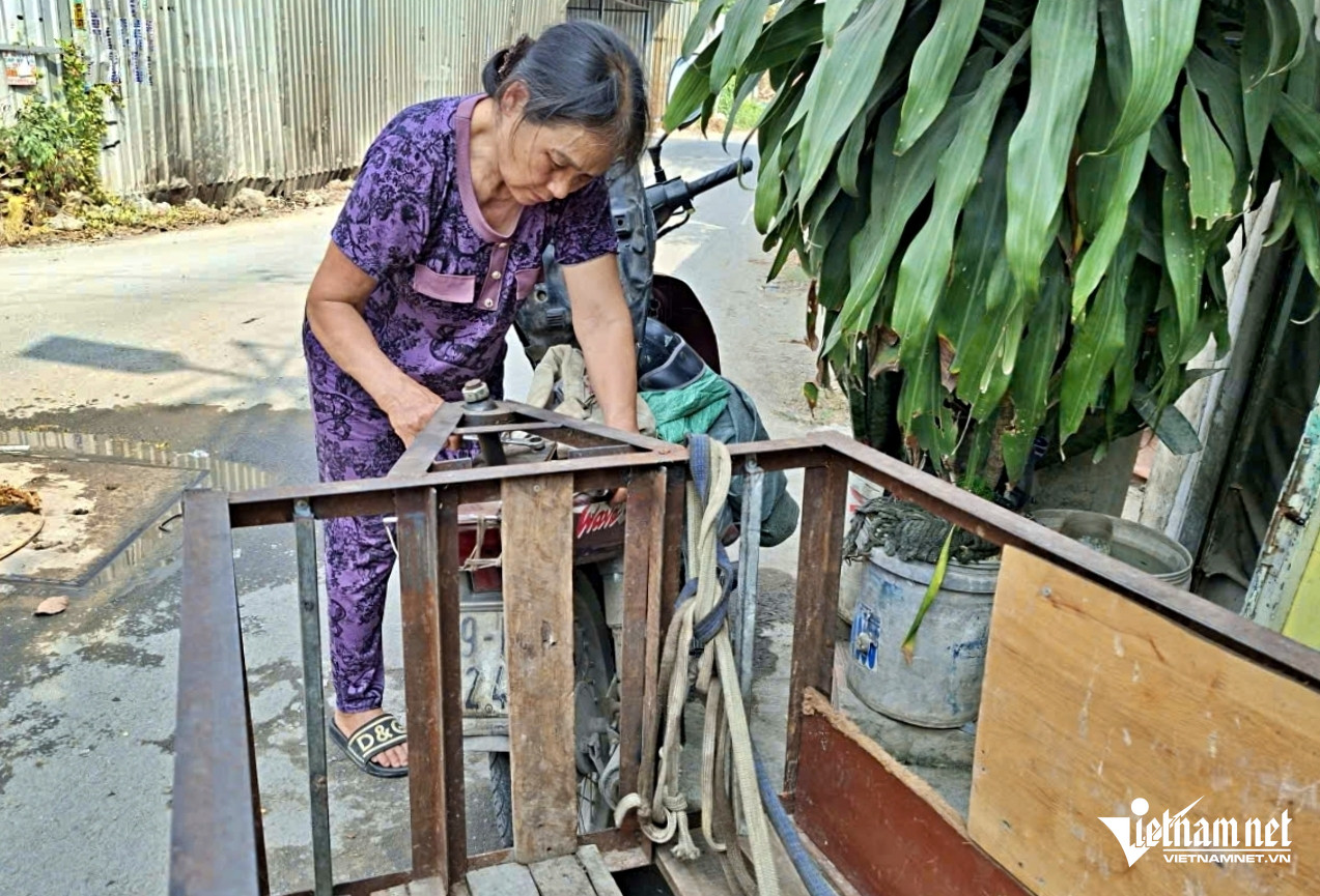 12h, bất chấp trời nắng nóng gay gắt, bà Bùi Thị Đông (SN 1957, ở xã Vĩnh Lộc, TPHCM) lại dắt chiếc xe ve chai cũ ra khỏi ngõ. Dặn vội đứa cháu nhỏ nấu cơm chiều, bà nổ máy, bắt đầu mưu sinh để có tiền mua thức ăn cho 3 đứa cháu nội.