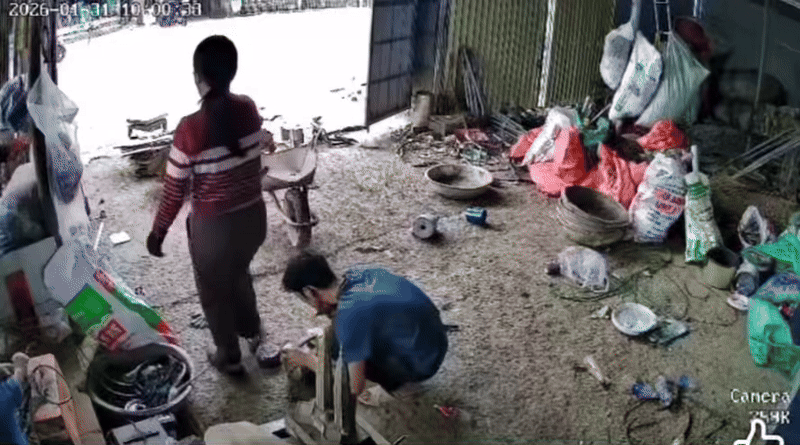 Theo đó, 2 vợ chồng đang ngồi làm việc cùng nhau. Tiếp đó, người vợ ngẫu hứng cầm cây búa đứng lên rồi nhảy nhót. Đáng nói, quá trình vung tay nhảy múa, không may cây búa đã văng trúng đầu người chồng.