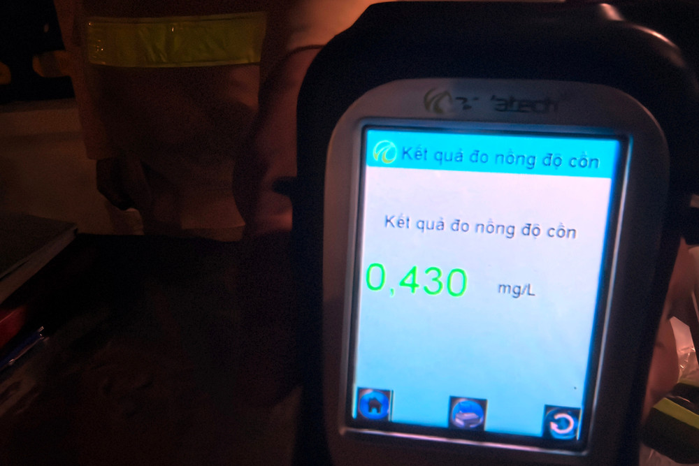 Tuy nhiên, cá biệt vẫn còn những trường hợp vi phạm. Trong ảnh là kết quả đo nồng độ cồn của một nam tài xế sau khi vừa rời tiệc tất niên. Dù viện lý do "chỉ uống một chút mừng tuổi cuối năm", nhưng trước bằng chứng từ thiết bị nghiệp vụ, tài xế đã phải thừa nhận hành vi.