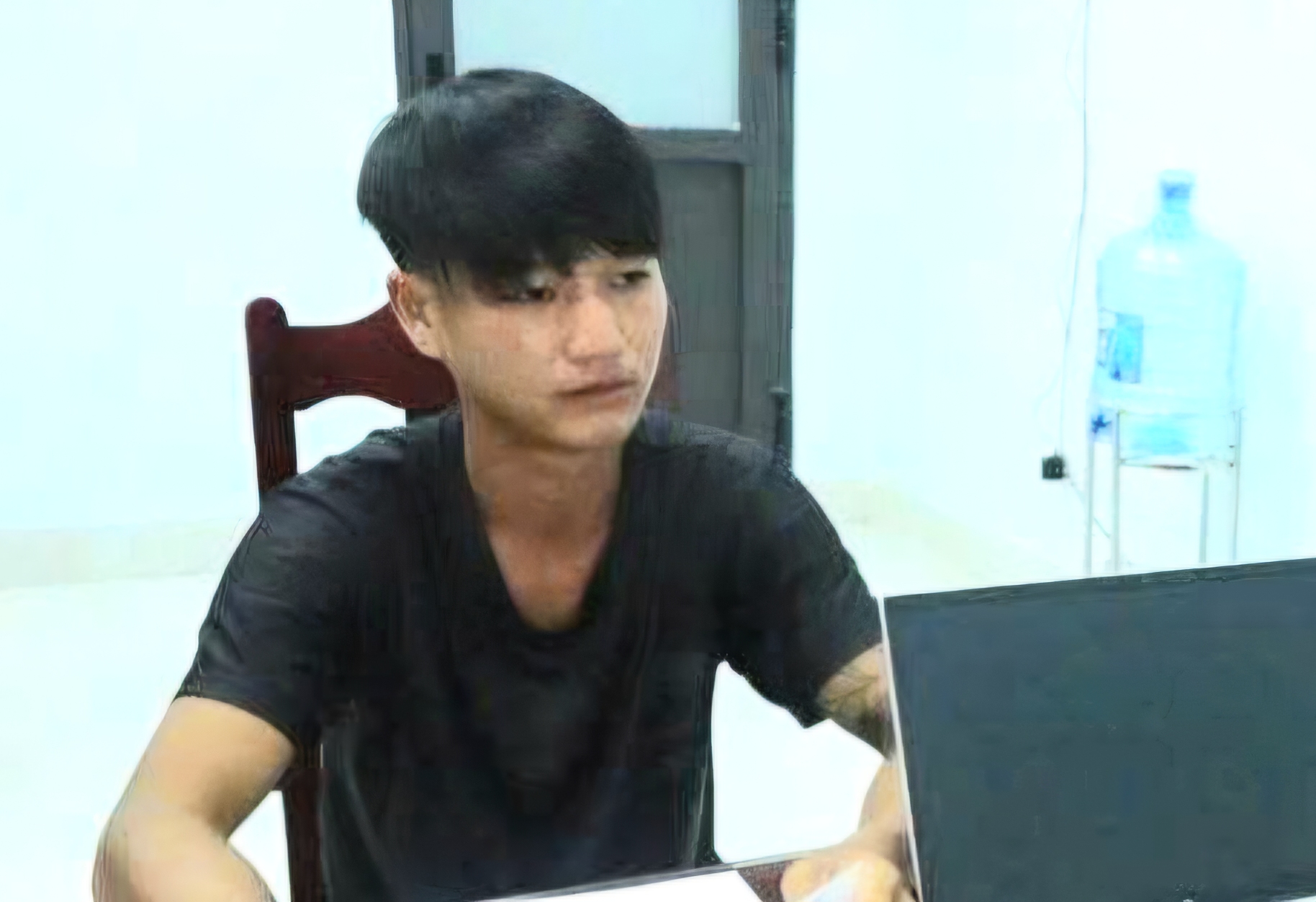 Huỳnh Xuân Tài tại cơ quan công an. Ảnh: XH