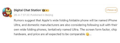 Theo nguồn tin Digital Chat Station, Apple có thể chọn tên “iPhone Ultra” cho iPhone màn hình gập thay vì “iPhone Fold”. Hướng đi này không phải ngẫu nhiên, chúng phù hợp với chiến lược đặt tên đã được hãng áp dụng trong nhiều năm qua.