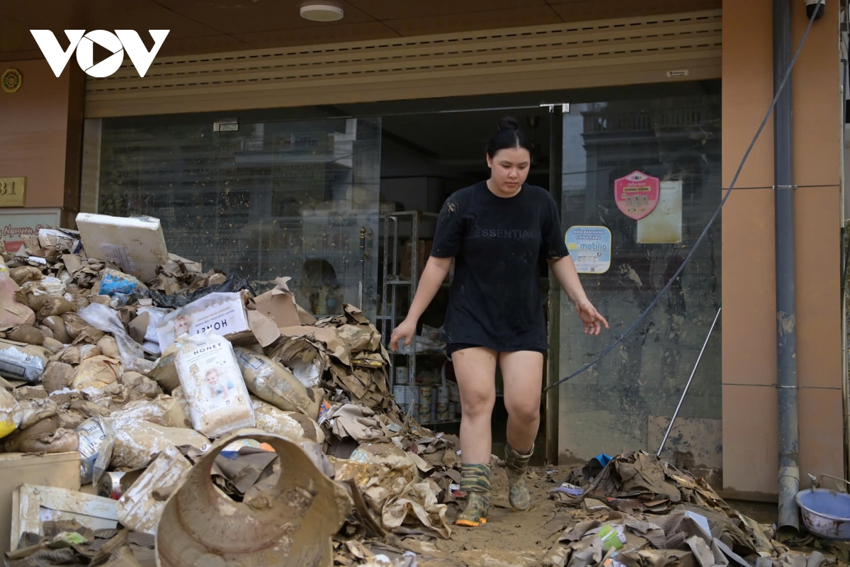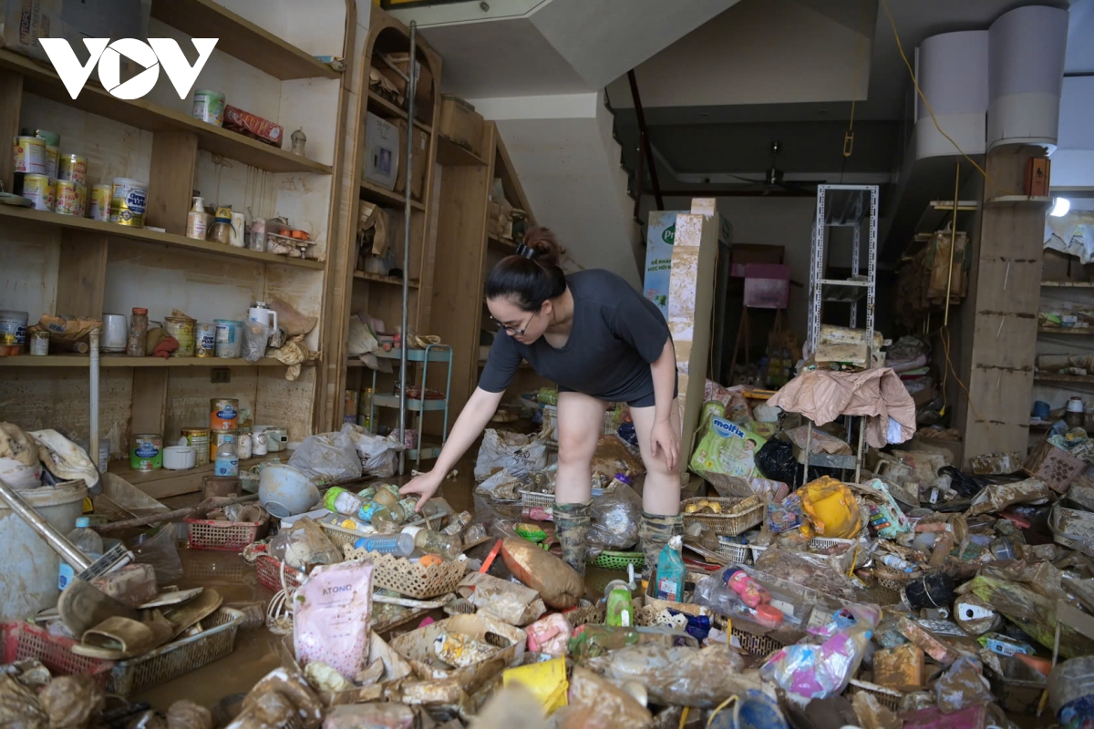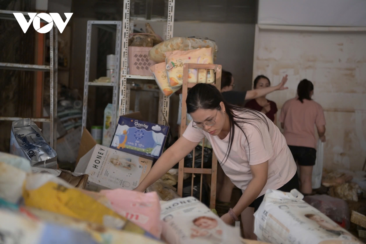 Xót xa, tiếc của nên hôm nay chị vẫn phải đi lại xuống dưới nhà xem mẹ và mấy nhân viên cửa hàng dọn dẹp đồ đạc trong cửa hàng, bốc dỡ hàng hóa bị hư hỏng chất ra ngoài.