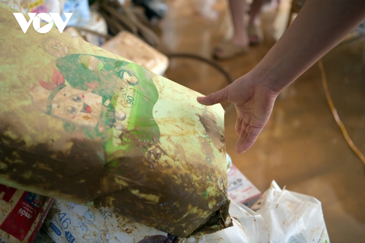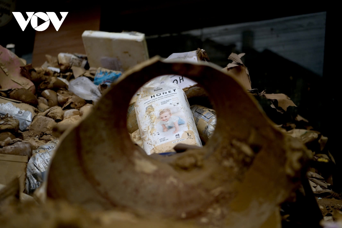 Toàn bộ bỉm trê em và nhiều đồ dùng khác bị hư hỏng phải vứt bỏ không thể dùng được.