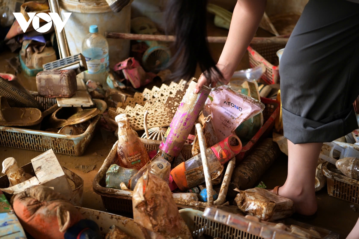 "Em nghĩ cũng không thể lấy lại được, toàn đồ cho trẻ em khi đã ngập ngâm trong nước không sử dụng được nữa. Phải bỏ đi thôi", chị Ly xót xa.