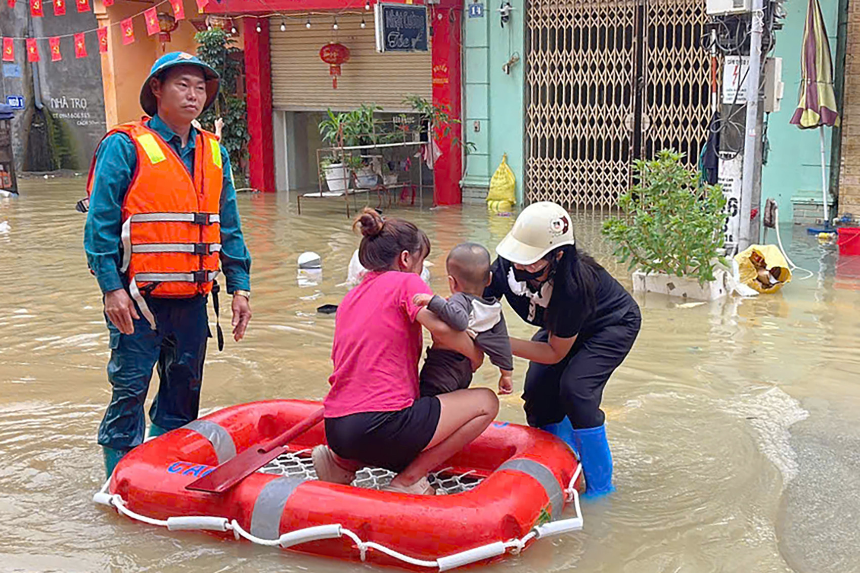Người dân tại xã Thất Khê được đưa ra khỏi vùng ngập. Ảnh: Đ.X