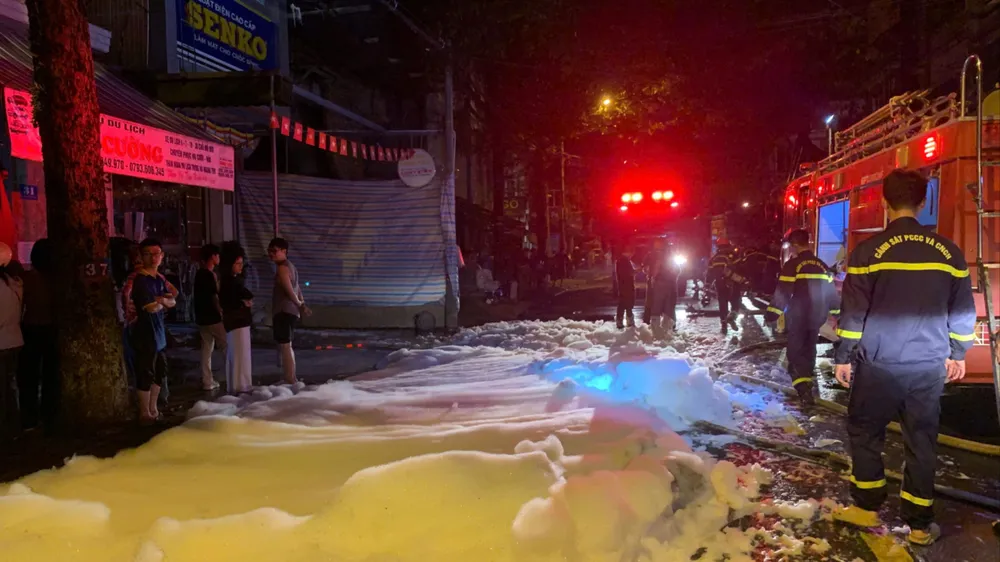 Khi kiểm tra xung quanh, người dân phát hiện khói đen và lửa bùng cháy ở tầng năm, tại căn nhà số 33 đường Trần Bình Trọng nên đập cửa hô hoán chủ nhà và tìm phương án dập lửa.