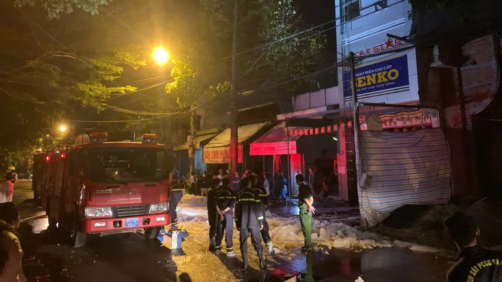 Tối 21-10, lực lượng của Phòng Cảnh sát PCCC & CNCH Công an tỉnh Đắk Lắk vẫn đang túc trực để xử lý đám cháy xảy ra tại căn nhà cao tầng trên đường Trần Bình Trọng, phường Buôn Ma Thuột, tỉnh Đắk Lắk.
