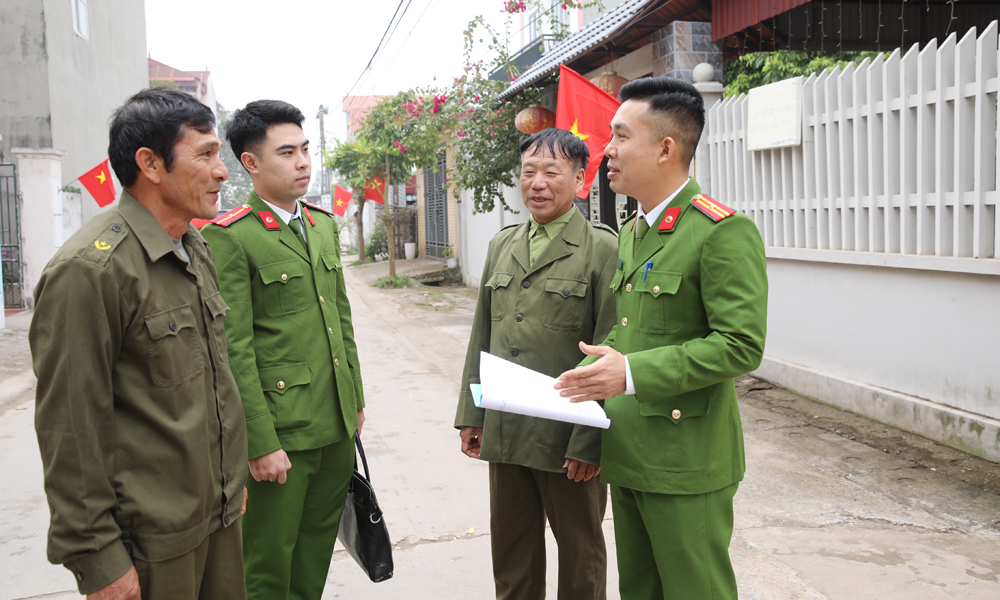 Cán bộ Công an phường Tân An phối hợp với Tổ bảo vệ an ninh trật tự tổ dân phố Khôi nắm bắt tình hình, phòng ngừa tội phạm trộm cắp tài sản.