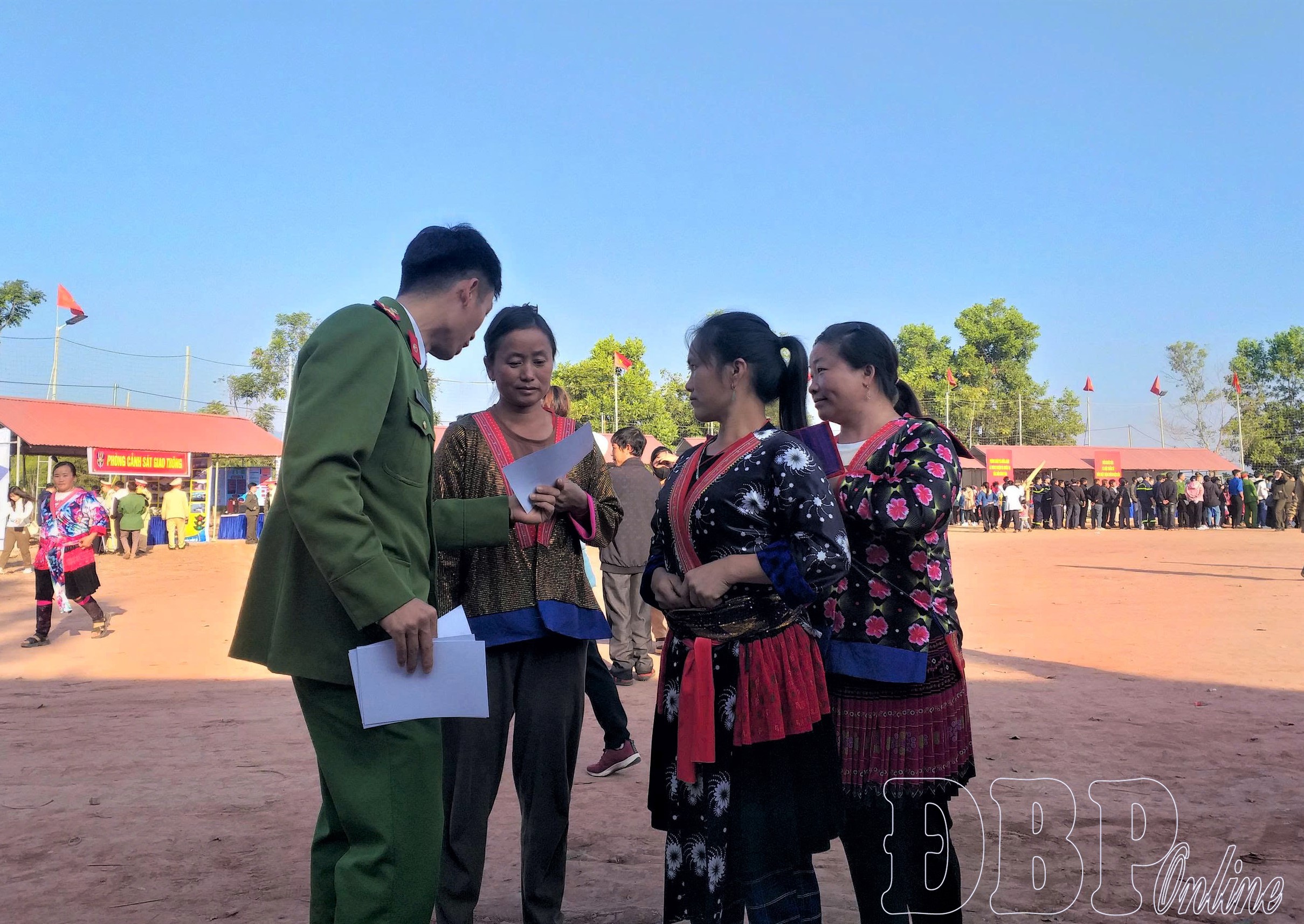 Cán bộ Phòng Cảnh sát hình sự Công an tỉnh tuyên truyền các phương thức, thủ đoạn của tội phạm mua bán người đến người dân xã Si Pa Phìn.