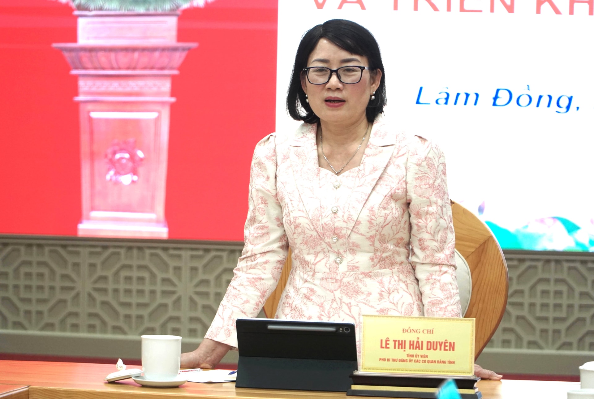 Đồng chí Lê Thị Hải Duyên, Tỉnh ủy viên, Phó Bí thư Đảng ủy Các cơ quan Đảng tỉnh Lâm Đồng, kiêm Trưởng Ban chỉ đạo 35 chủ trì Hội nghị.