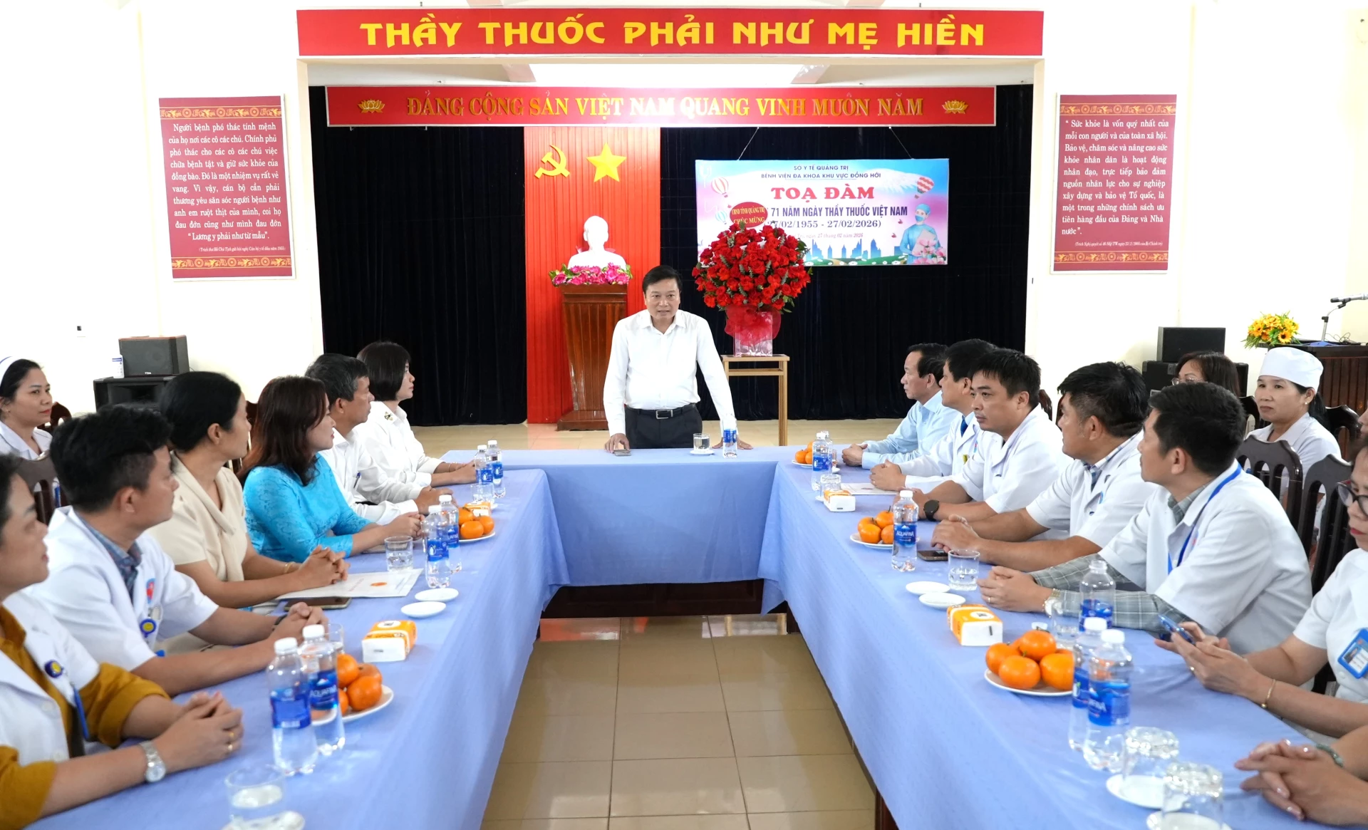 Đồng chí mong muốn mỗi cán bộ, y bác sĩ, nhân viên y tế của bệnh viện luôn giữ vững ngọn lửa yêu nghề, không ngừng học tập, cập nhật kiến thức chuyên môn, rèn luyện y đức, phát huy tinh thần đoàn kết, chung sức xây dựng bệnh viện ngày càng phát triển vững mạnh, thực sự trở thành địa chỉ tin cậy trong công tác chăm sóc và bảo vệ sức khỏe Nhân dân trên địa bàn.