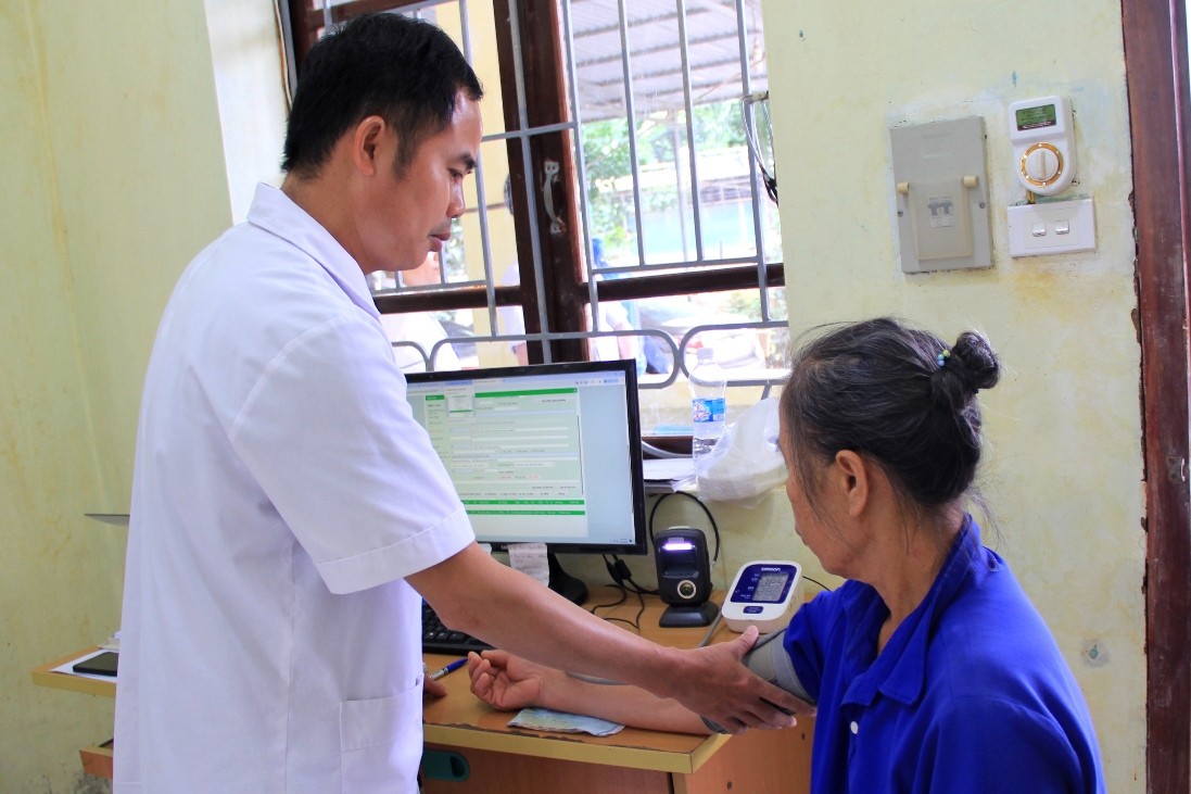 Cán bộ y tế xã Yên Bình thăm khám cho bệnh nhân tại Trạm Y tế