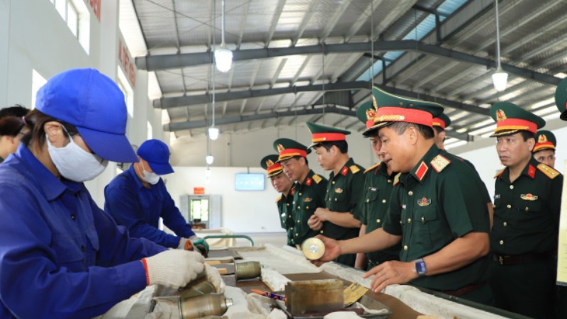 Trung tướng Trần Minh Đức kiểm tra công tác bao gói, bảo quản đạn dược tại Kho KV1, Cục Quân khí, Tổng cục Hậu cần-Kỹ thuật.