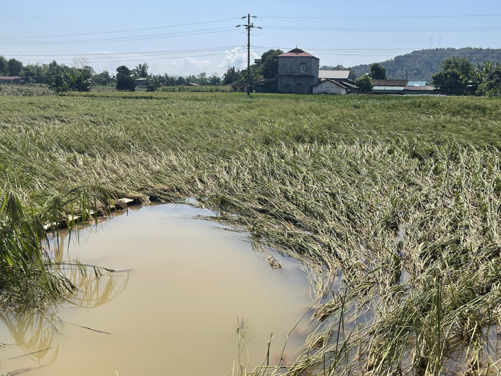 Vụ lúa mùa năm nay gia đình chị cấy hơn 1.800 m2 lúa, trồng 2.000 ha ngô, rau màu đều bị gẫy đổ, ngập úng sâu trong nước, nguy cơ toàn bộ diện tích hoa màu của gia đình bị mất trắng hoàn toàn. Trong đợt mưa lũ này, ước tính thiệt hại do thiên tai gây ra về đồ dùng sinh hoạt gia đình, diện tích hoa màu trên 200 triệu đồng.