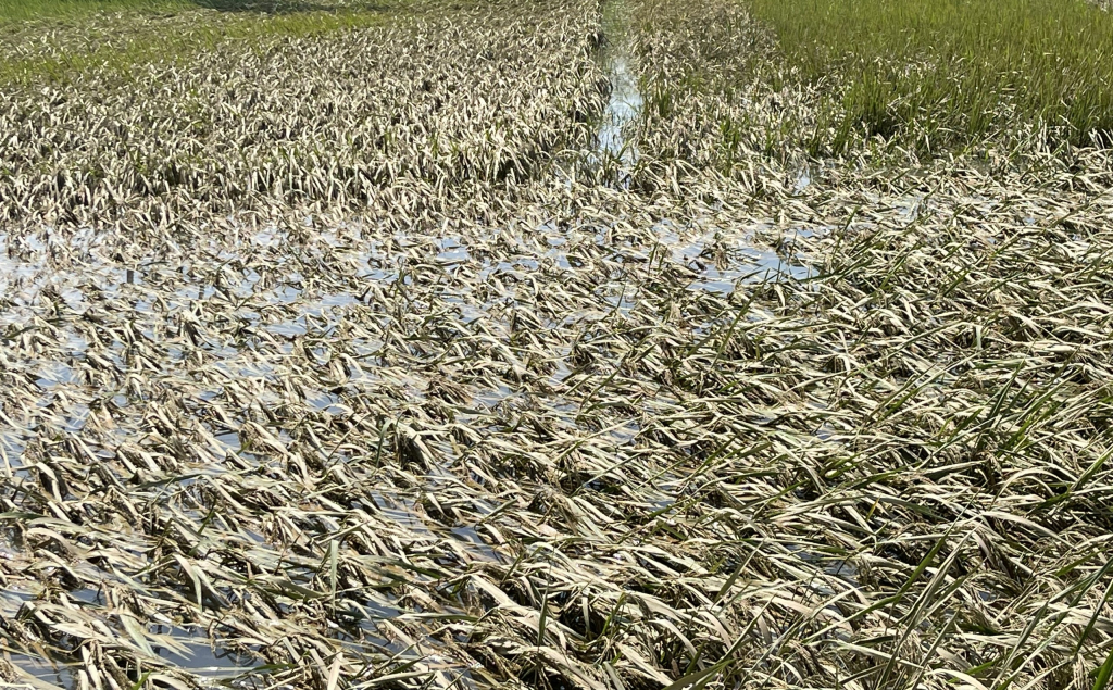 Cánh đồng lúa của người dân tại phường Nùng Trí Cao bị đổ rạp, ngập sâu trong nước do ảnh hưởng cơn bão số 11.