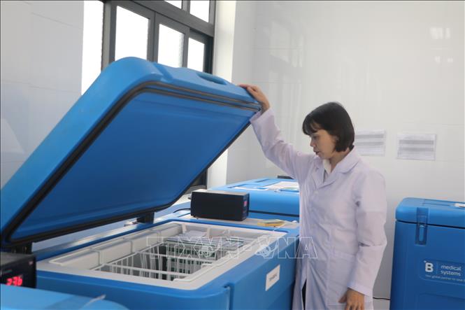 Cán bộ Trung tâm Kiểm soát bệnh tật (CDC) tỉnh Quảng Ngãi kiểm tra nguồn vaccine đang được lưu trữ, bảo quản tại đơn vị.