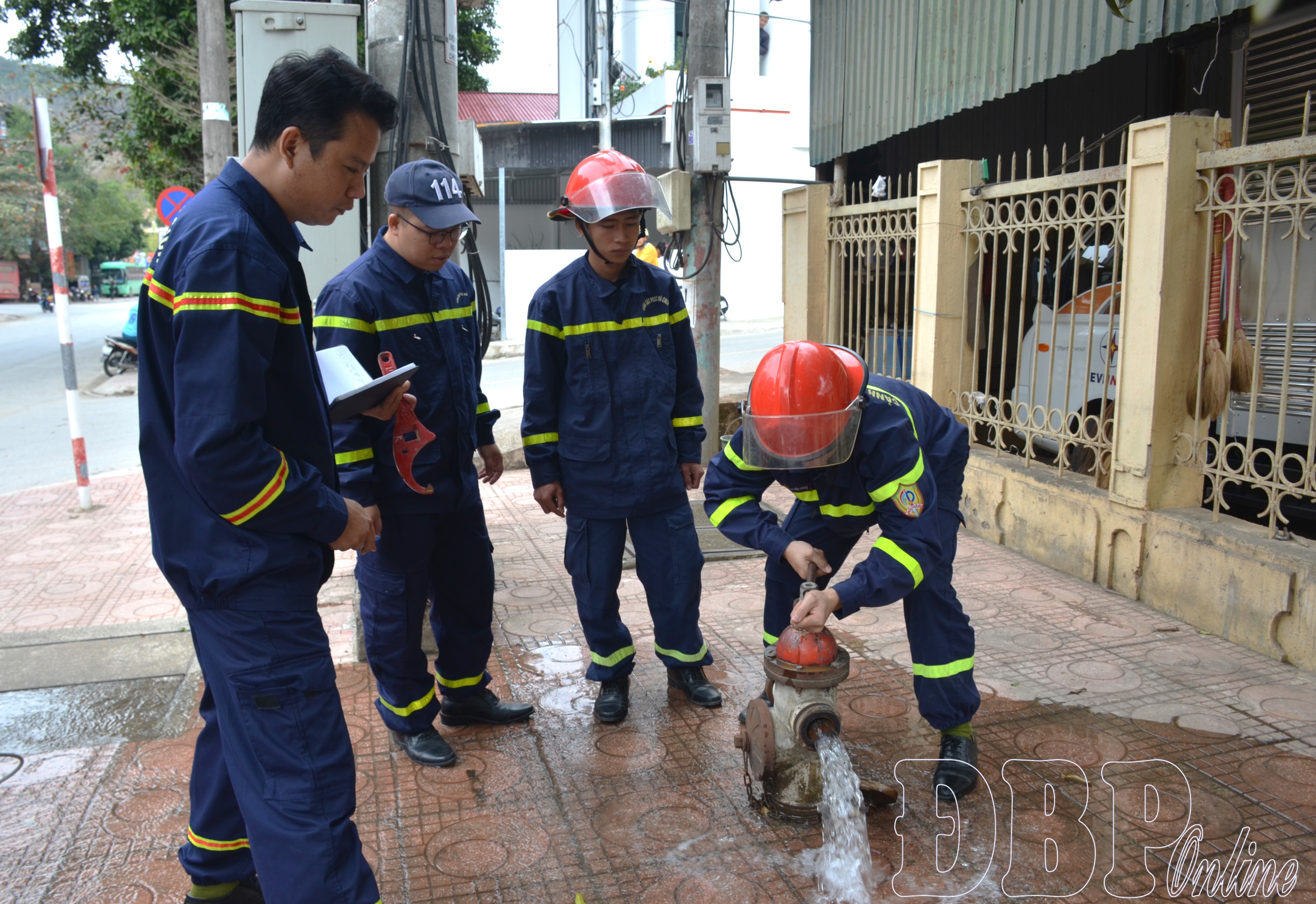 Đội Chữa cháy và CNCH khu vực Na Sang kiểm tra các trụ nước chữa cháy để chủ động trong mọi tình huống.