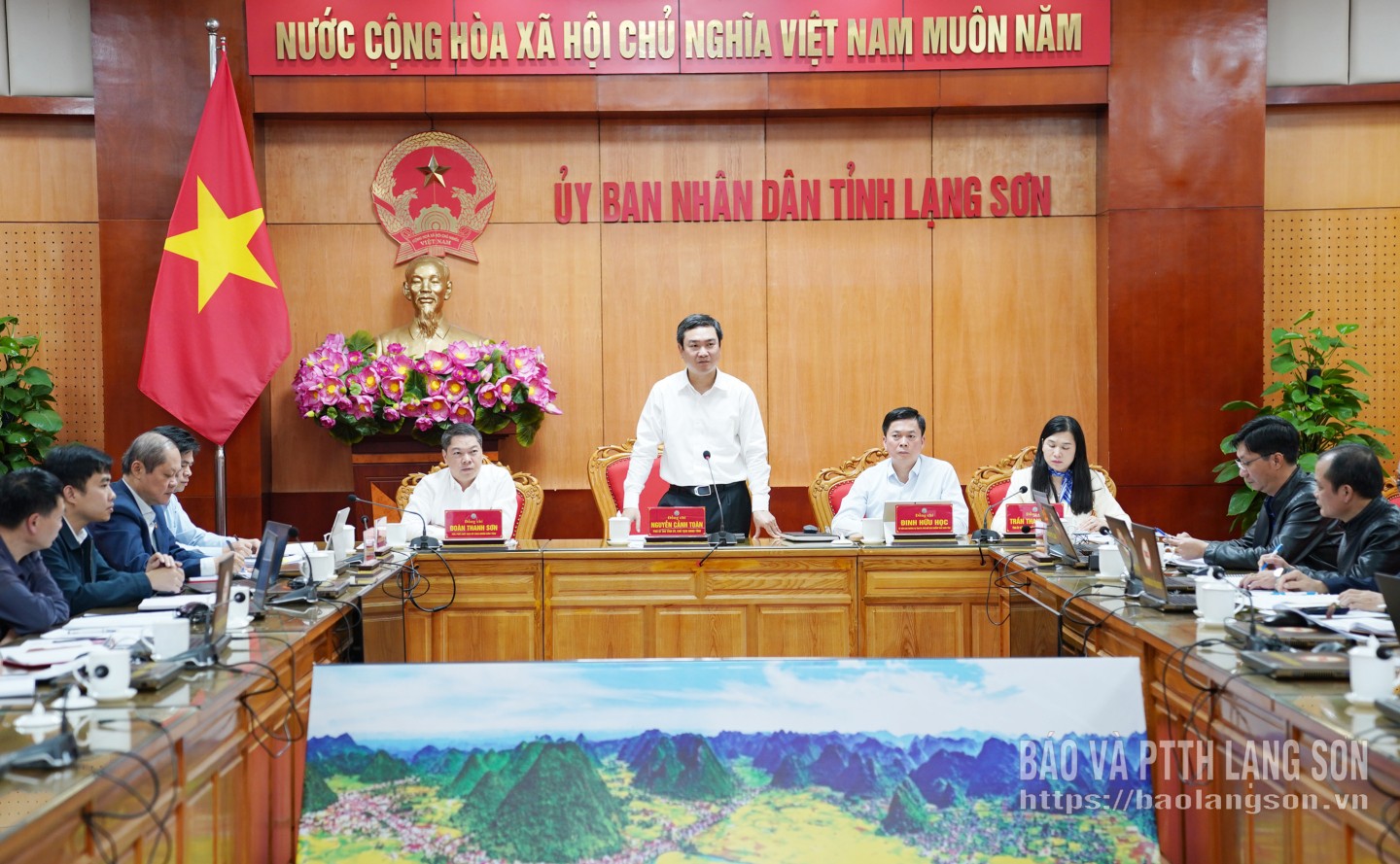 Cùng dự buổi làm việc có các đồng chí: Đinh Hữu Học, Ủy viên Ban Thường vụ Tỉnh ủy, Phó Chủ tịch Thường trực UBND tỉnh; Đoàn Thanh Sơn, Phó Chủ tịch UBND tỉnh; Trần Thanh Nhàn, Phó Chủ tịch UBND tỉnh.