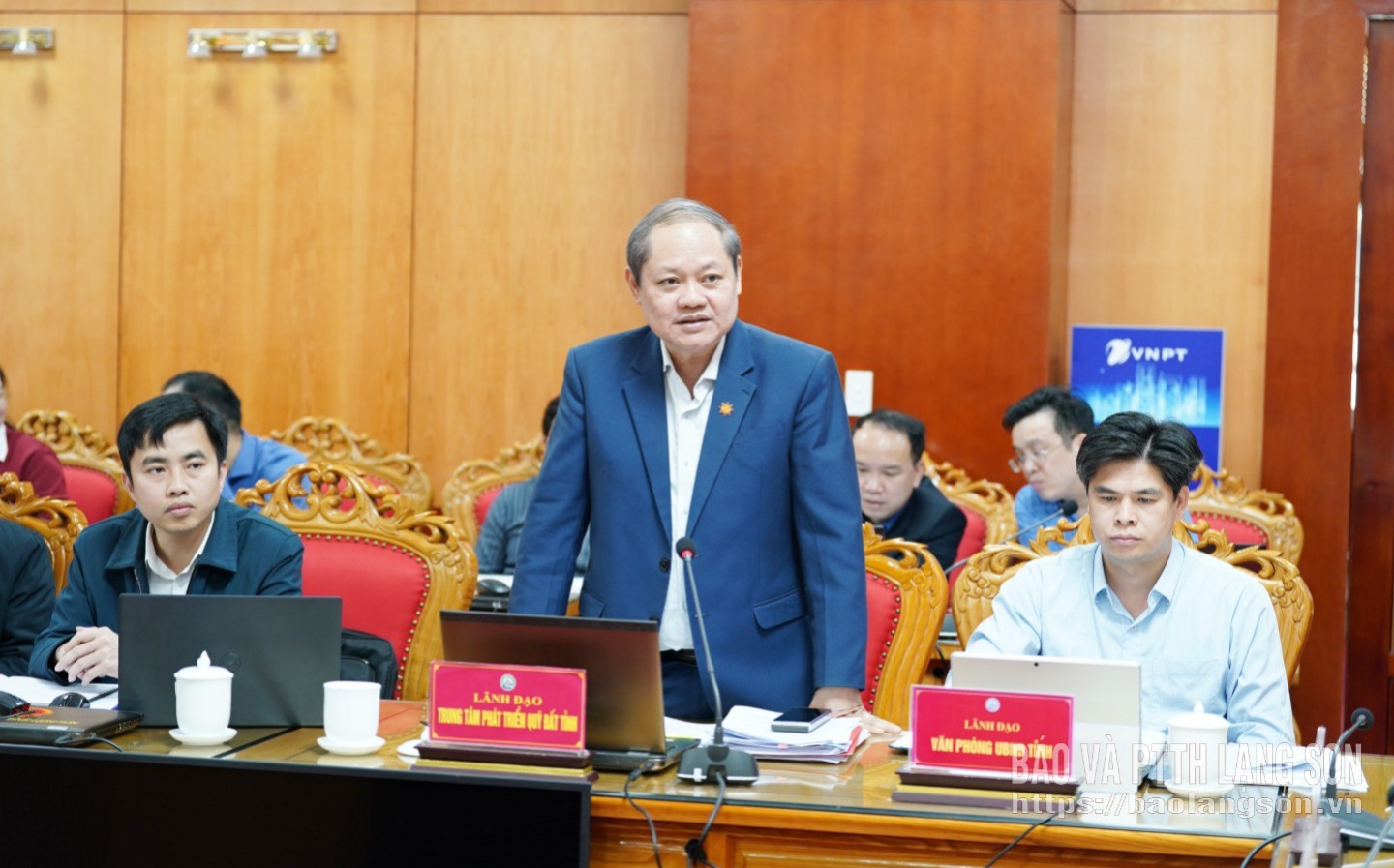 Lãnh đạo Trung tâm Phát triển quỹ đất tỉnh báo cáo tình hình triển khai các nhiệm vụ của đơn vị