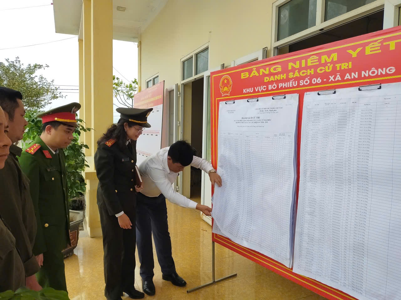 Tại tất cả các xã, phường trên địa bàn tỉnh Thanh Hóa, lực lượng công an cơ sở luôn bám sát để hỗ trợ các khâu trong công tác bầu cử. Ảnh: Đình Hợp