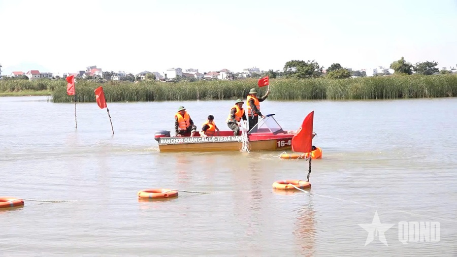 Ban chỉ huy PTKV 1-Cẩm Lệ hướng dẫn kỹ năng, nghiệp vụ cứu hộ, cứu nạn trên sông, trên biển cho các lực lượng.