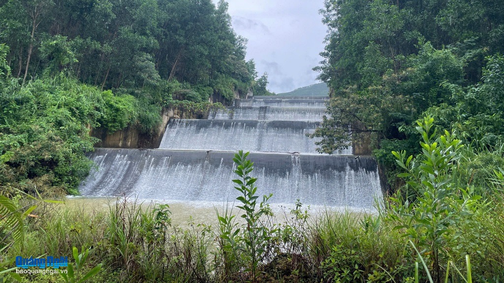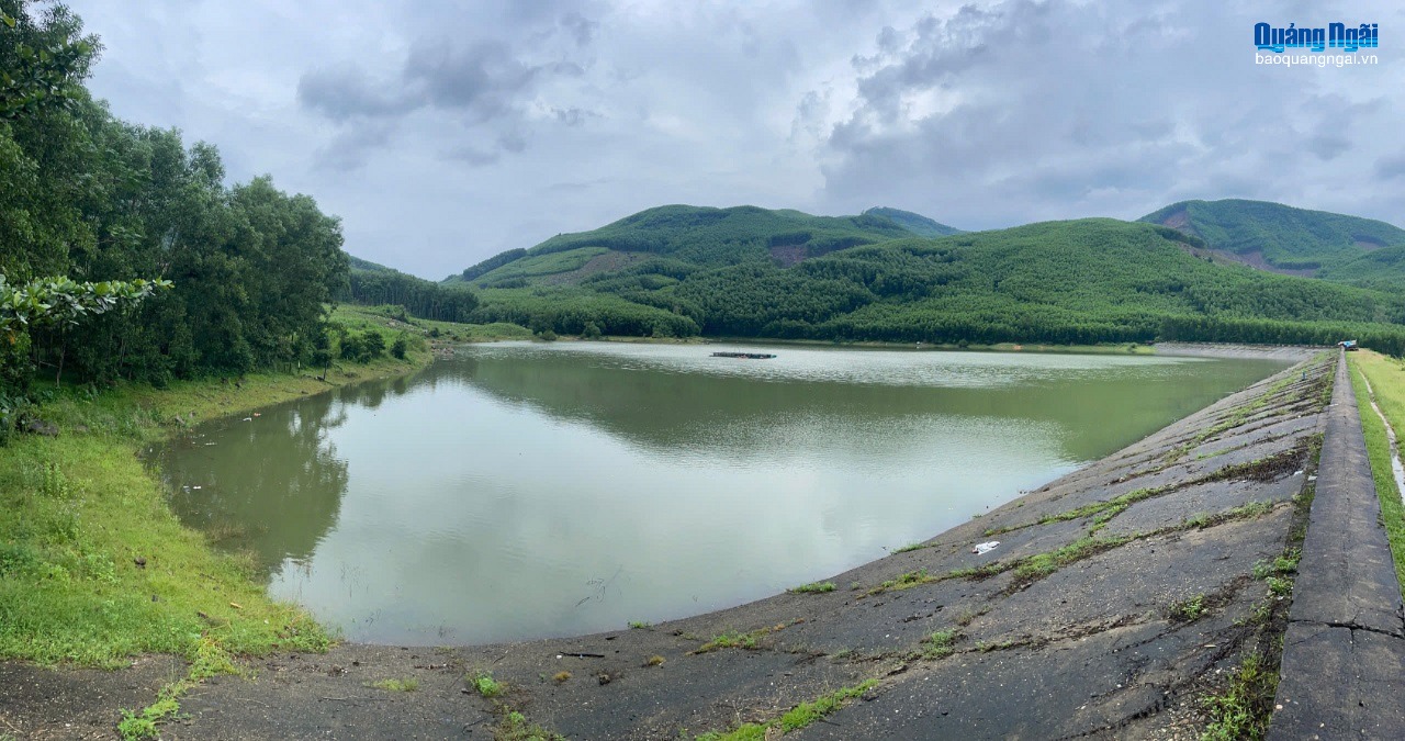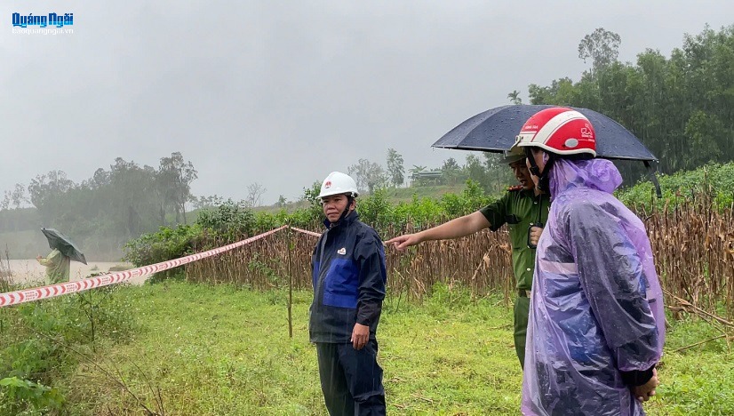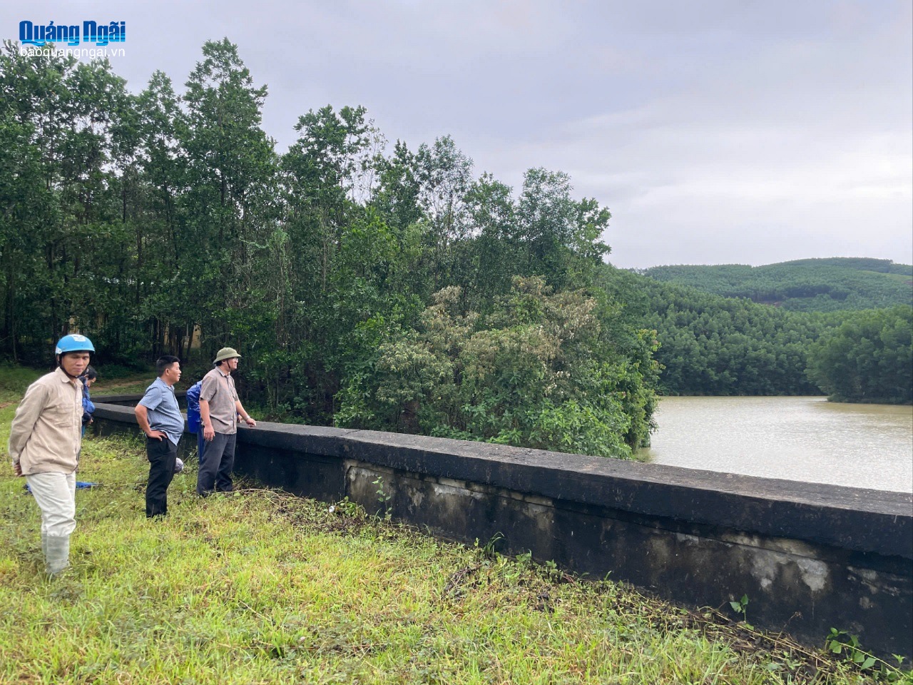 Lãnh đạo xã Đông Trà Bồng kiểm tra hồ Vực Thành.