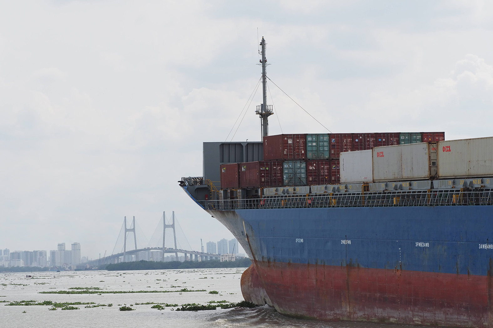 Tàu container vận chuyển hàng hóa vào cảng Cát Lái, TPHCM, một trong những đầu mối logistics lớn của khu vực phía Nam ẢNH: HOÀNG HÙNG