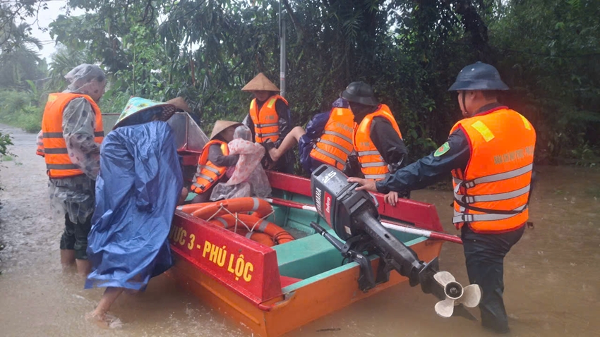 Để ứng cứu kịp thời, Ban Chỉ huy Phòng thủ dân sự TP. Huế đã điều động 6 cán bộ cùng ca nô đến hỗ trợ người dân sơ tán khỏi vùng ngập tại xã Chân Mây - Lăng Cô. Công an TP. Huế cũng huy động khoảng 60 cán bộ, chiến sĩ, cùng phương tiện chuyên dụng sẵn sàng phân luồng, điều tiết giao thông tại các điểm ngập nặng.
