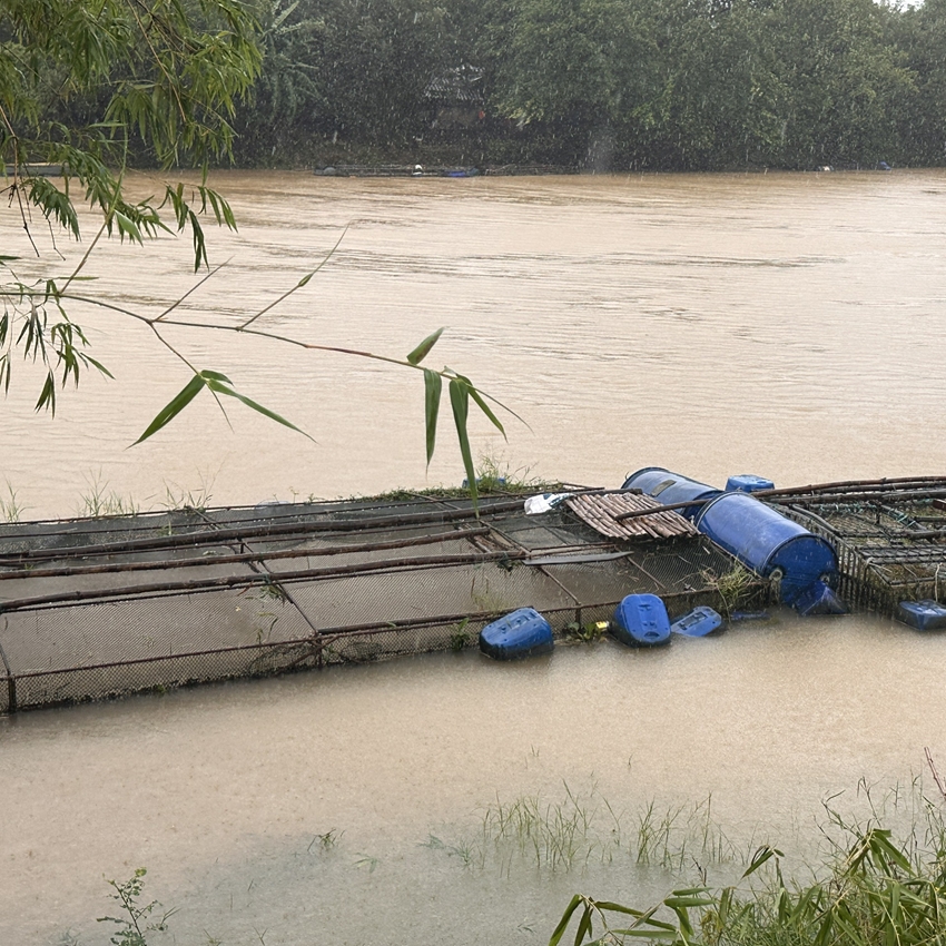 Các hộ nuôi cá lồng trên sông cần có biện pháp bảo vệ lồng cá trước mưa lớn
