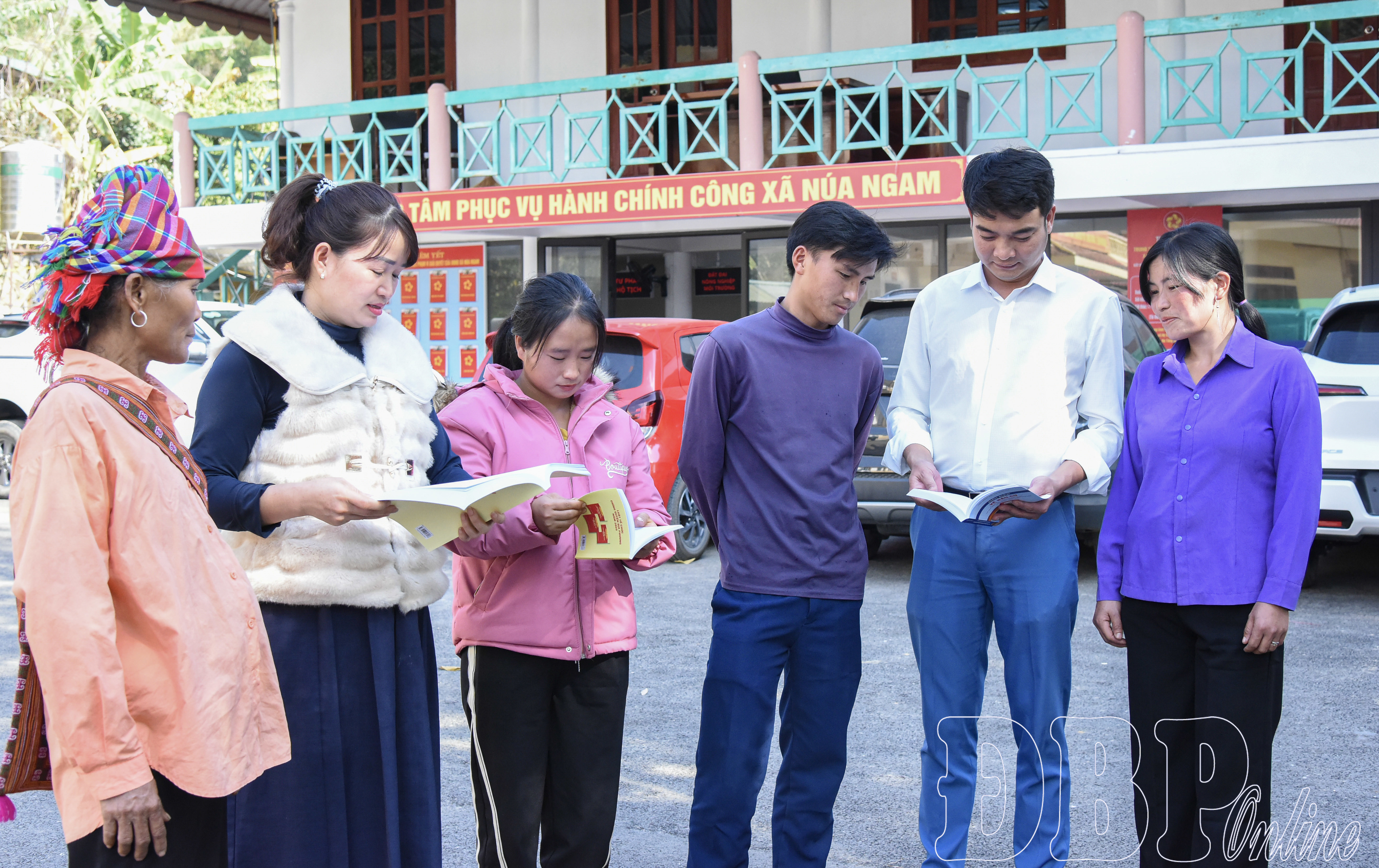 Cán bộ xã Núa Ngam đẩy mạnh công tác tuyên truyền, tạo sự đồng thuận trong Nhân dân.